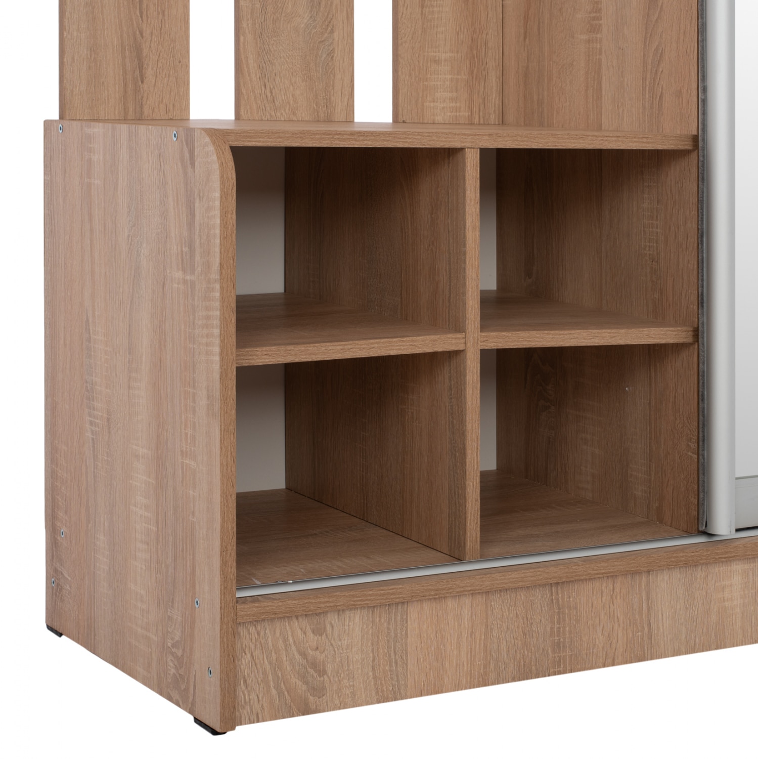 Στην αριστερή πλευρά διαθέτει ράφι αποθήκευσης στο πάνω μέρος, χώρο για κρεμάστρες και 4 ράφια για αποθήκευση μικροαντικειμένων στο κάτω μέρος.