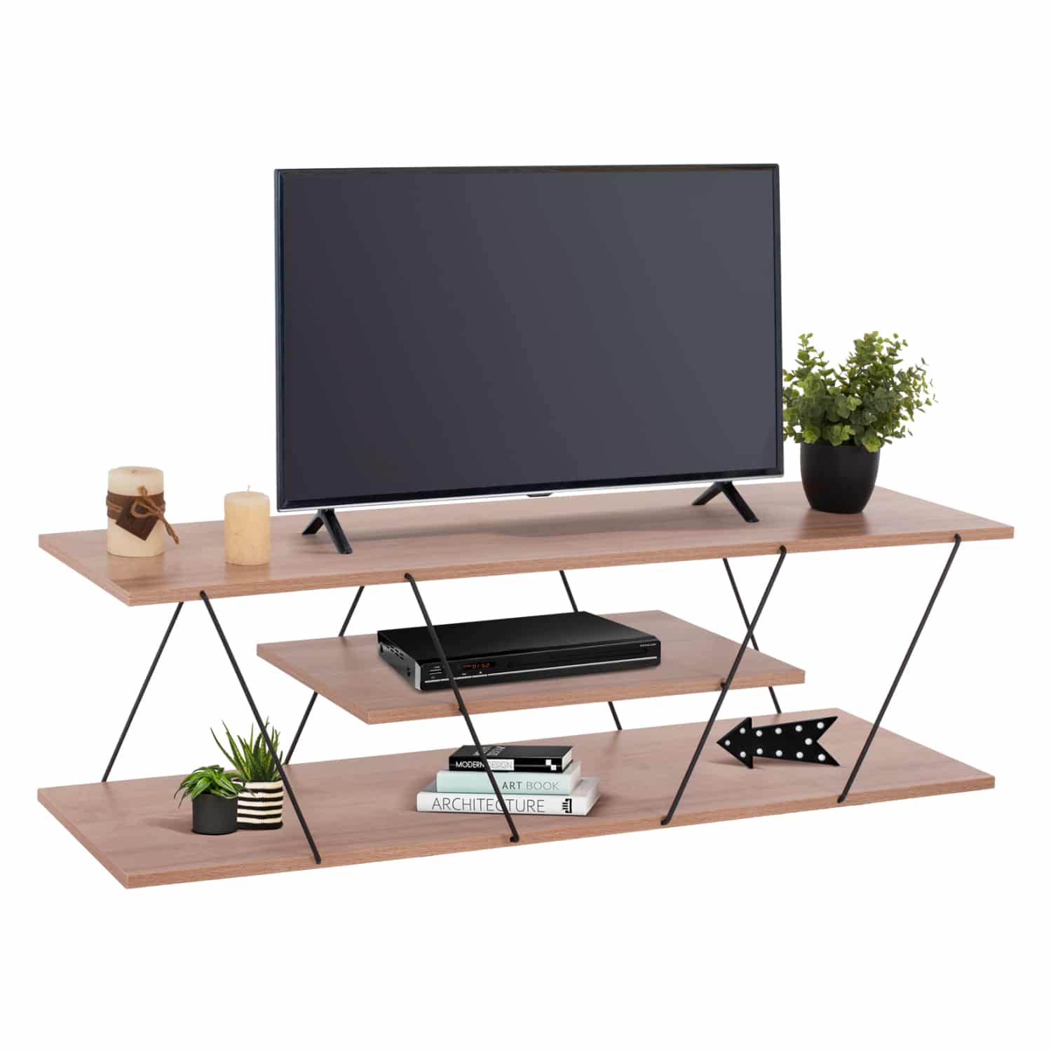 ΗΜ8922.11 έπιπλο τηλεόρασης—– Το TARS είναι ένα όμορφο έπιπλο σε ΦΥΣΙΚΟ χρώμα με μοντέρνο design που θα αλλάξει την εικόνα του σαλονιού ή του καθιστικού σας προς το καλύτερο. Πρόκειται για μια στενόμακρη κατασκευή 3 επιπέδων (επιφανειών) τα οποία ενώνονται μεταξύ τους με μεταλλικές ΜΑΥΡΕΣ βέργες διαφορετικής γεωμετρίας, προσδίδοντας την μοντέρνα πινελιά σε αυτό το έπιπλο τηλεόρασης. Το ΗΜ8922.11 μπορεί να ταιριάξει με πολλά διακοσμητικά μοτίβα στον χώρο χάρη και στο λιτό του στυλ.