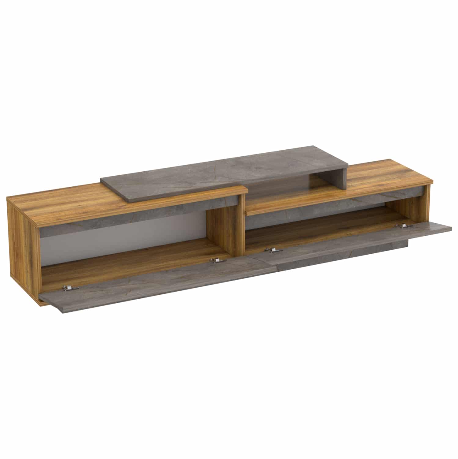Το LEIS είναι ένα ακόμα νέο έπιπλο τηλεόρασης, που κοσμεί την γκάμα μας! Έχει όμορφο σχεδιασμό με 2 ντουλαπάκια κάτω από την κύρια επιφάνεια. Πρόκειται για μια κομψή και λιτή πρόταση για το σαλόνι σας σε χρώμα ΦΥΣΙΚΟ ΞΥΛΟΥ με ΓΚΡΙ ΜΑΡΜΑΡΟ, ενώ δεν διαθέτει εμφανή πόδια αλλά το έπιπλο ακουμπάει στο έδαφος με «ποδιά» ίδιας όψης!