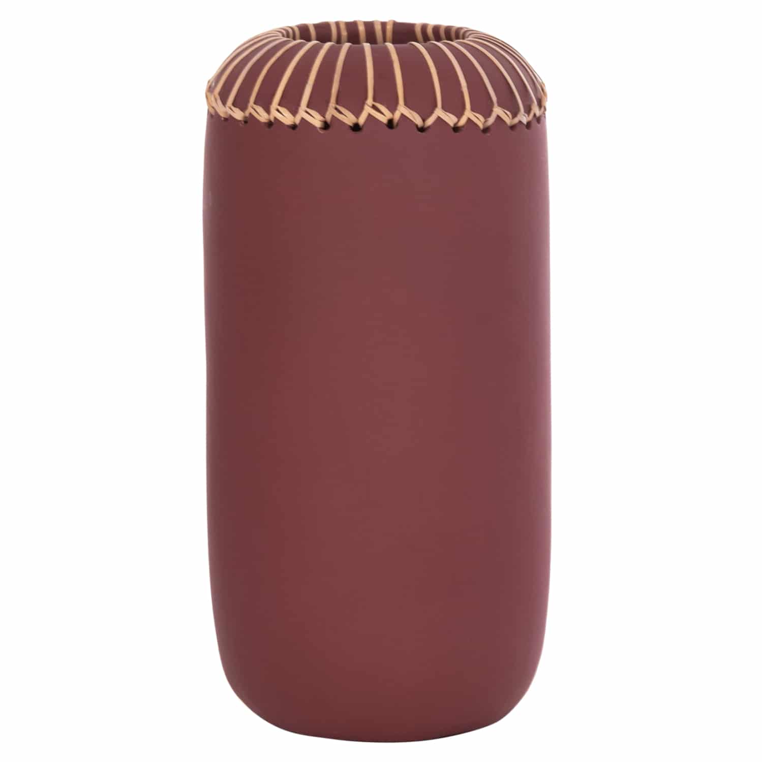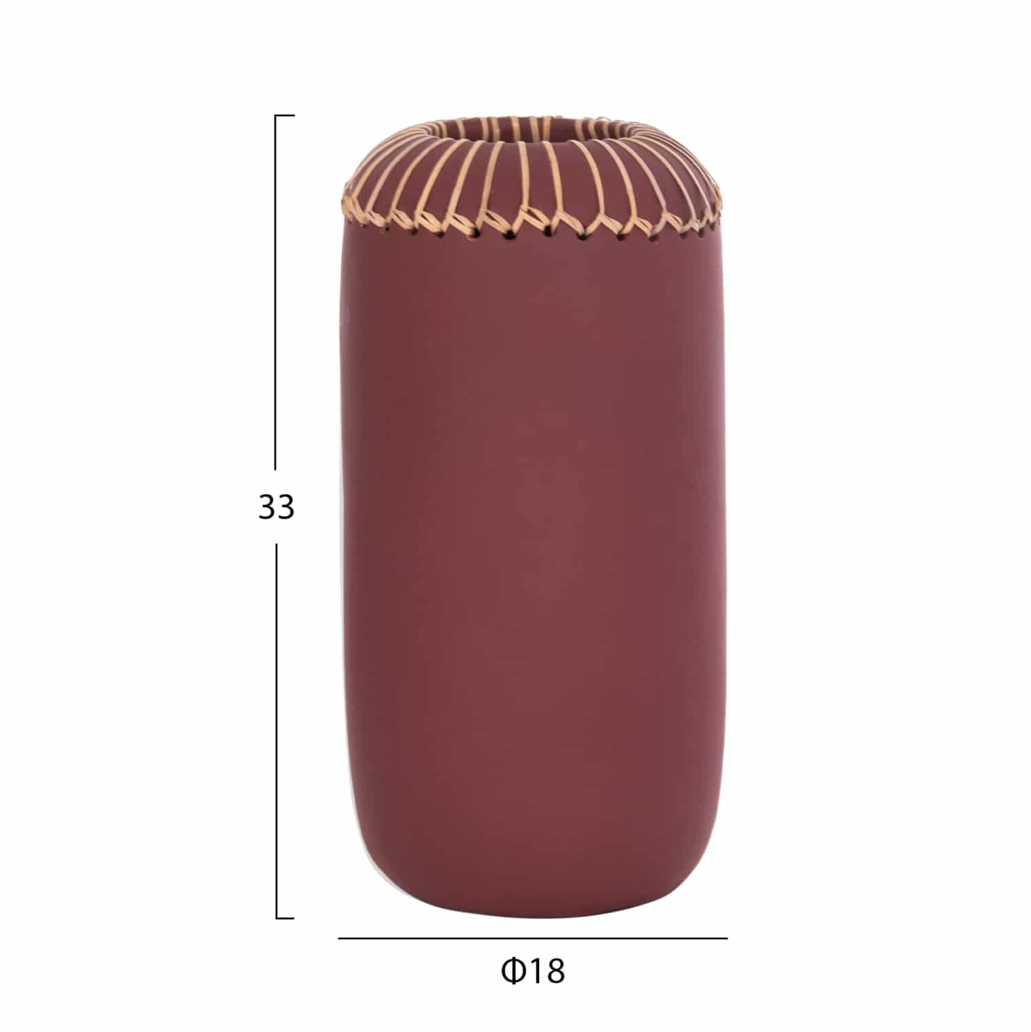 Το χειροποίητο επιτραπέζιο διακοσμητικό βάζο LENNOX είναι ένα όμορφο διακοσμητικό στοιχείο για κάθε χώρο. Είναι κατασκευασμένο εξολοκλήρου από τερακότα σε εντυπωσιακό ΒΥΣΣΙΝΙ χρώμα ενώ το στόμιο είναι διακοσμημένο με μια πλέξη από φυσικό rattan. Ιδανικό για πληθώρα χρήσεων και χώρων.