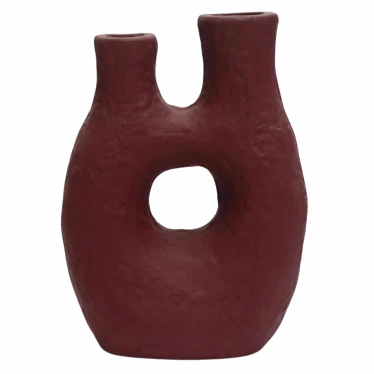 Το χειροποίητο επιτραπέζιο διακοσμητικό βάζο NAMENTIS με δύο στόμια είναι ένα πολύ ιδιαίτερο διακοσμητικό στοιχείο για κάθε χώρο. Είναι κατασκευασμένο εξολοκλήρου από τερακότα με σαγρέ υφή σε ΒΥΣΣΙΝΙ χρώμα, ακολουθώντας την σύγχρονη τάση στην εσωτερική διακόσμηση. Ιδανικό για πληθώρα χρήσεων και χώρων.