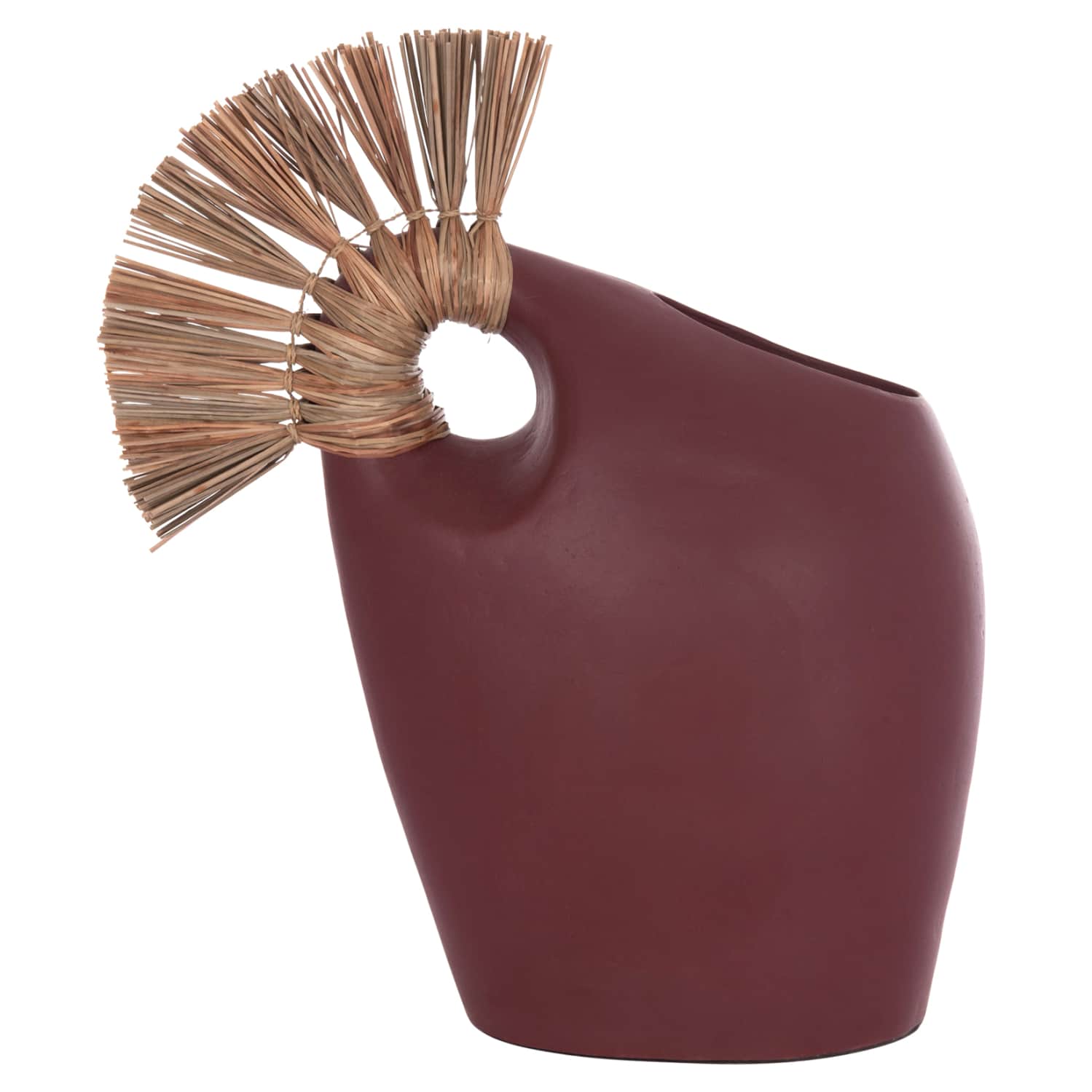 Το επιτραπέζιο χειροποίητο διακοσμητικό βάζο ALICA2 είναι ένα πολύ ιδιαίτερο διακοσμητικό στοιχείο για κάθε χώρο. Είναι κατασκευασμένο εξολοκλήρου από τερακότα σε ΒΥΣΣΙΝΙ χρώμα, ενώ διαθέτει και ένα χερούλι επενδυμένο με αποξηραμένο grass, και ένα φαρδύ στόμιο.