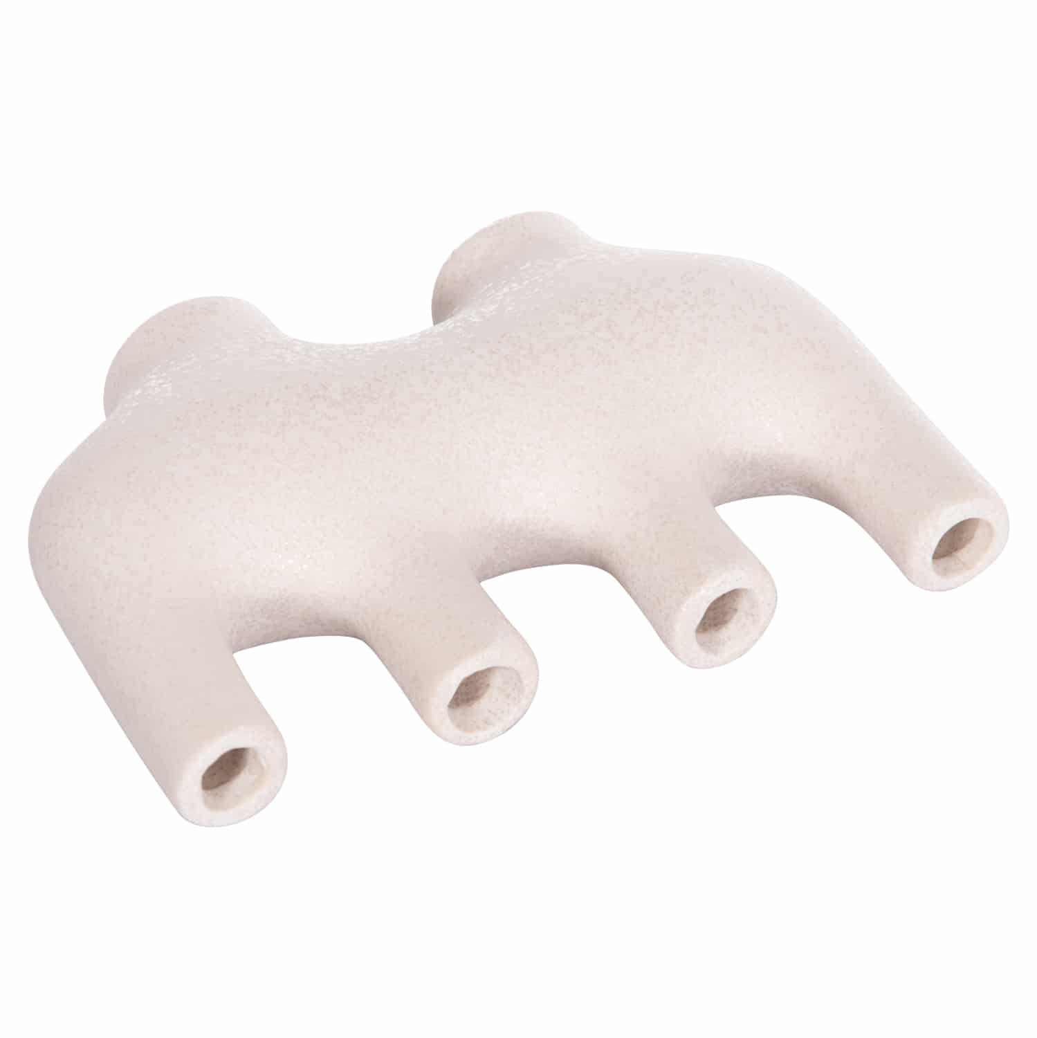 Το HM4641.01 ανήκει στην καινούργια μας σειρά επιτραπέζιων διακοσμητικών «MANI». Αυτό το κομμάτι σε σχήμα βάζου με 4 στόμια σε ΥΠΟΛΕΥΚΟ χρώμα είναι κατασκευασμένο από κεραμικό υλικό με ειδική επεξεργασία κρυσταλλοποίησης, που δίνει την όψη και την υφή κρυστάλλου στα κεραμικά αντικείμενα.