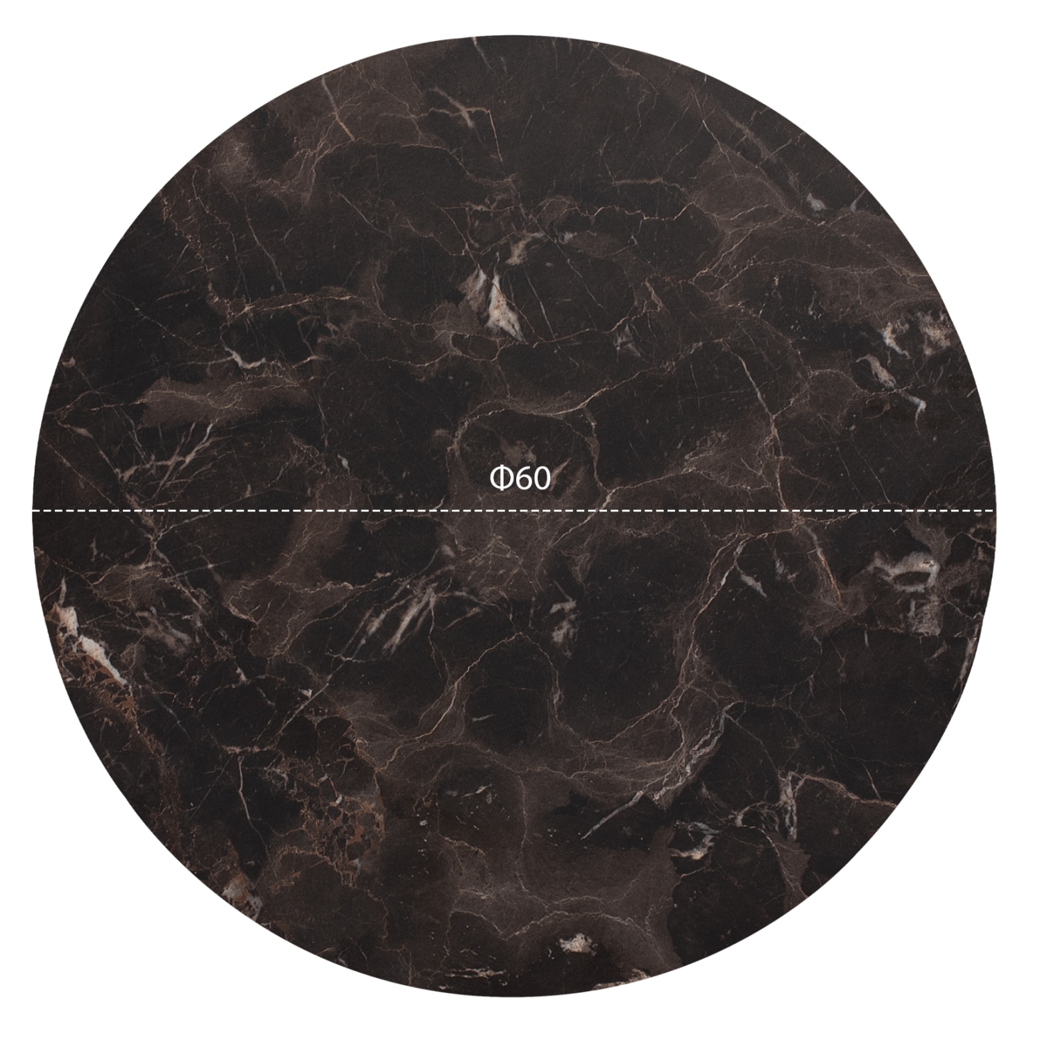 Επιφάνεια HPL (High Pressure Laminated),σε απόχρωση brown black marble Φ60 εκ.