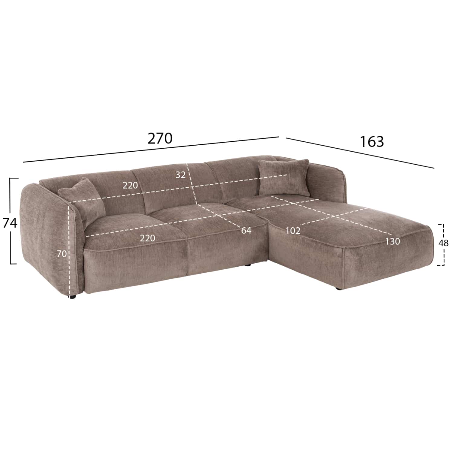 ΚΑΝΑΠΕΣ ΓΩΝΙΑ (ΔΕΞΙΑ) TREAT HM3277.02R ΣΚΟΥΡΟ ΜΠΕΖ ΥΦΑΣΜΑ 270x163x74Υεκ.