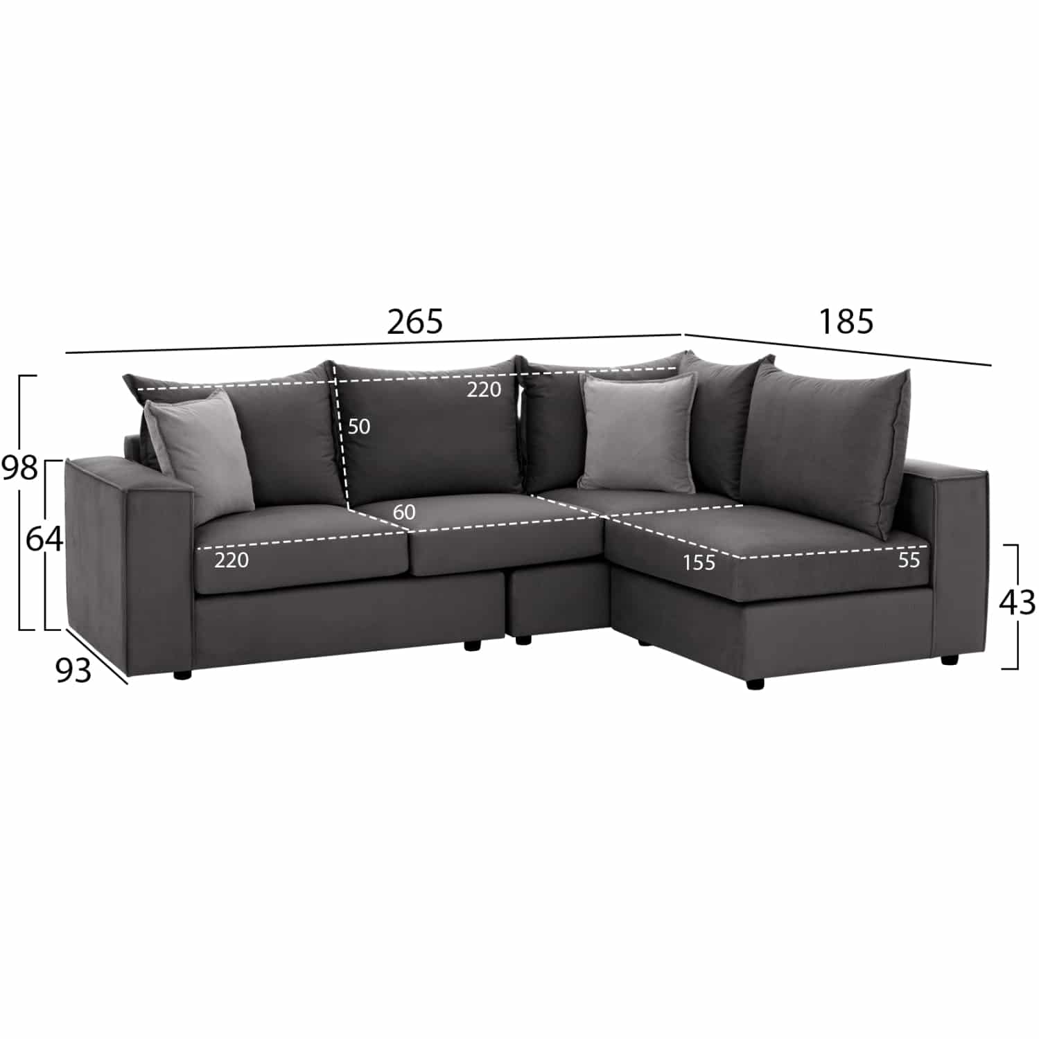 ΚΑΝΑΠΕΣ ΓΩΝΙΑ ΠΟΛΥΜΟΡΦΙΚΟΣ MONZA ΥΦΑΣΜΑ ΑΛΕΚΙΑΣΤΟ ΓΚΡΙ 265x195x98Yεκ. HM3256.01 HM3256.01