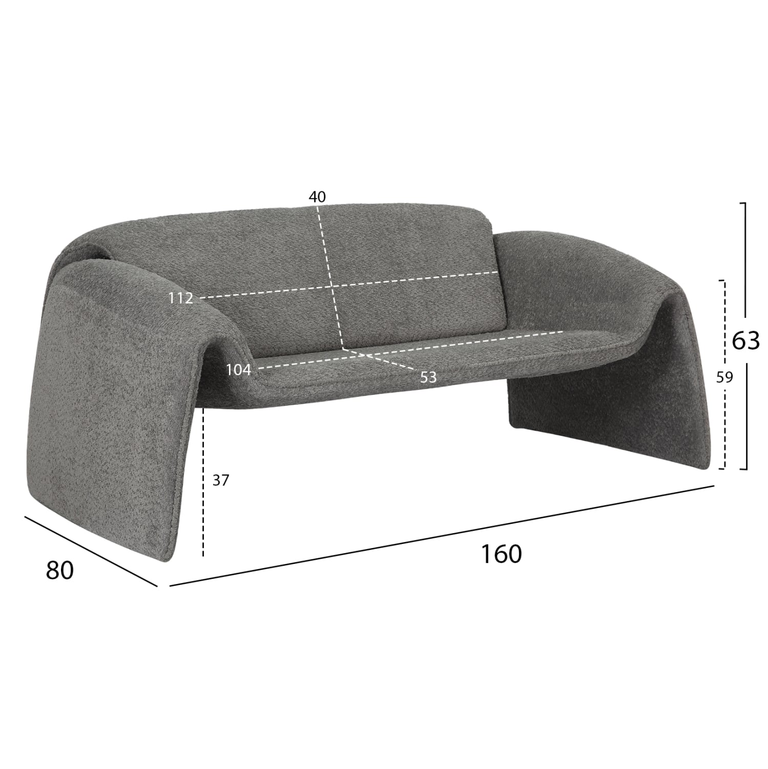 ΚΑΝΑΠΕΣ ΔΙΘΕΣΙΟΣ LAFORGE HM9680.01 ΜΕΤΑΛΛΙΚΟΣ ΣΚΕΛΕΤΟΣ-ΓΚΡΙ ΜΠΟΥΚΛΕ ΥΦΑΣΜΑ 160x80x63Υεκ. HM9680.01