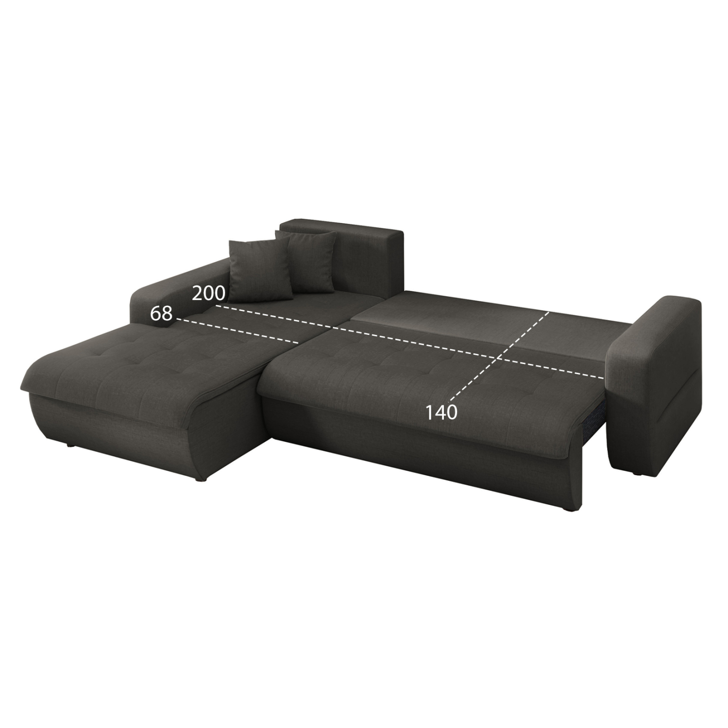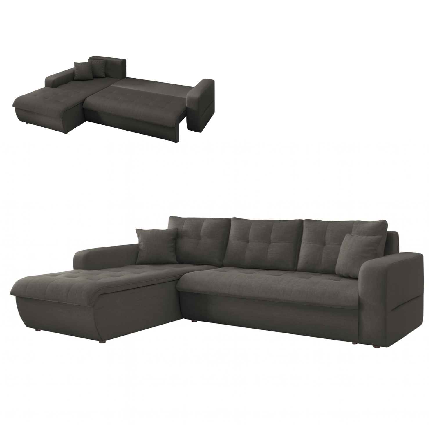 Καναπές-κρεβάτι Αριστερή Γωνία KANSO με Γκρι Υφασμάτινη Επένδυση