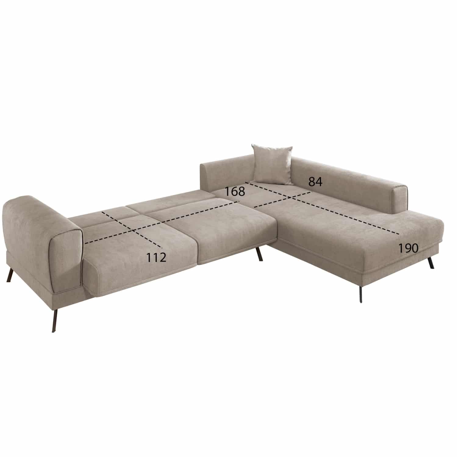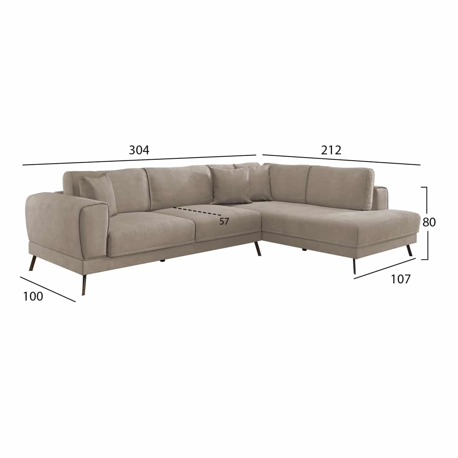 ΚΑΝΑΠΕΣ ΚΡΕΒΑΤΙ ΔΕΞΙΑ ΓΩΝΙΑ ZENORA HM3337.03R ΜΠΕΖ ΥΦΑΣΜΑ 303x214x80Υεκ