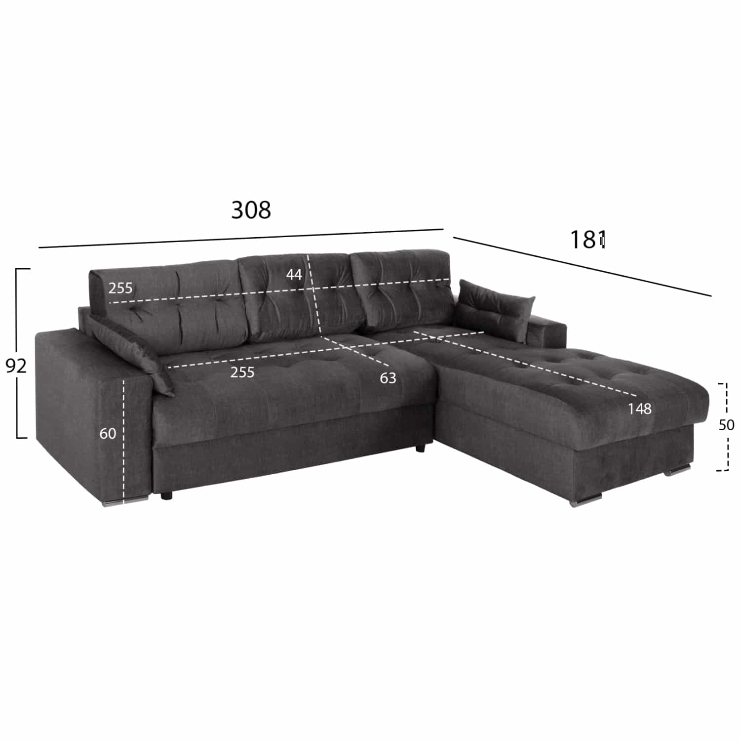 ΚΑΝΑΠΕΣ-ΚΡΕΒΑΤΙ-ΔΕΞ.ΓΩΝΙΑ-ΜΕ ΑΠΟΘ.ΧΩΡΟ CLANCY HM3281.02R ΑΝΘΡΑΚΙ ΥΦΑΣΜΑ 308x181x92Υεκ HM3281.02R