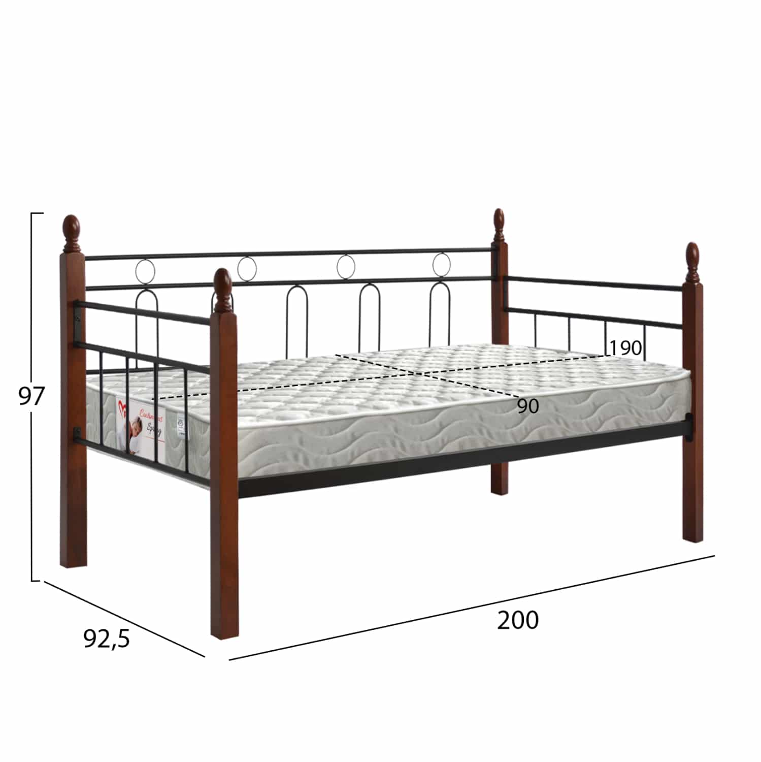 ΚΑΝΑΠΕΣ ΚΡΕΒΑΤΙ ΜΕ ΣΤΡΩΜΑ REVEN HM21329 ΜΕΤΑΛΛΟ & ΞΥΛΟ ΣΕ DIRTY OAK–ΣΤΡΩΜΑ 90Χ190εκ