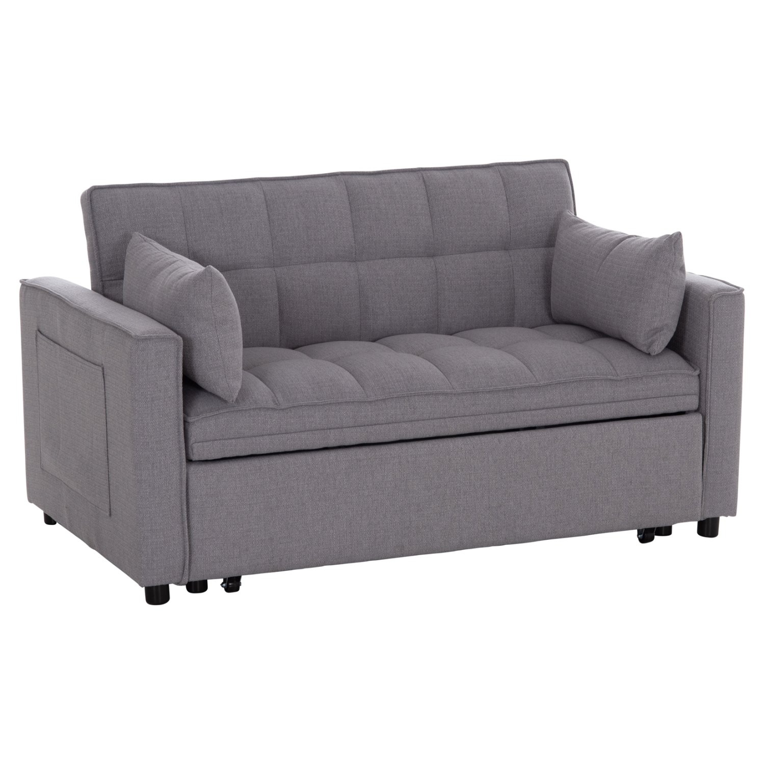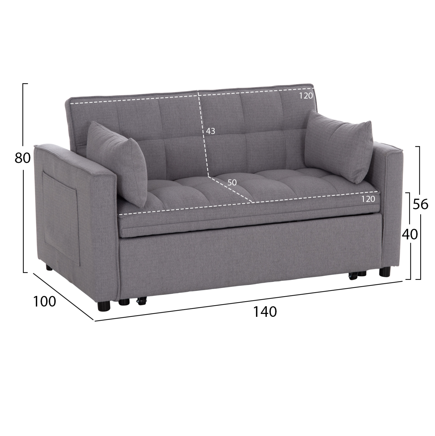 Ο διθέσιος καναπές BORG είναι ποιοτικός και πρακτικός. Έχει πολύ χαμηλά πόδια ενώ τα μπράτσα του διαθέτουν θήκες («τσέπες») στο εξωτερικό τους για πρόχειρη τοποθέτηση διάφορων αντικειμένων. Είναι επενδυμένος με ποιοτικό ύφασμα σε ΓΚΡΙ χρώμα και συνοδεύεται από δύο πλαϊνά μαξιλαράκια. Αυτό που τον κάνει όμως να ξεχωρίζει είναι ότι μετατρέπεται σε κρεβάτι πολύ εύκολα τραβώντας προς τα έξω με δύο ιμάντες το αναδιπλούμενο κρεβάτι που βρίσκεται κάτω από το κάθισμα.