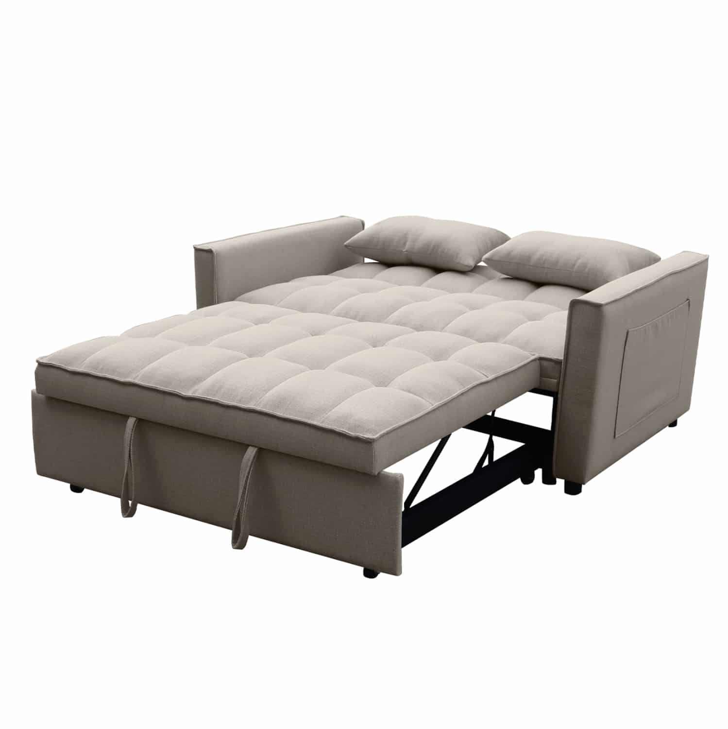 Ο διθέσιος καναπές BORG είναι ποιοτικός και πρακτικός. Έχει πολύ χαμηλά πόδια ενώ τα μπράτσα του διαθέτουν θήκες («τσέπες») στο εξωτερικό τους για πρόχειρη τοποθέτηση διάφορων αντικειμένων. Είναι επενδυμένος με ποιοτικό ύφασμα σε ΜΠΕΖ χρώμα και συνοδεύεται από δύο πλαϊνά μαξιλαράκια. Αυτό που τον κάνει όμως να ξεχωρίζει είναι ότι μετατρέπεται σε κρεβάτι πολύ εύκολα τραβώντας προς τα έξω με δύο ιμάντες το αναδιπλούμενο κρεβάτι που βρίσκεται κάτω από το κάθισμα.