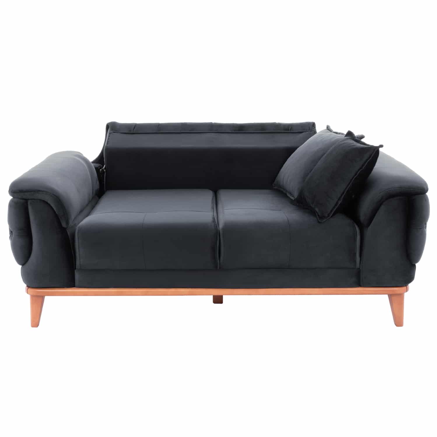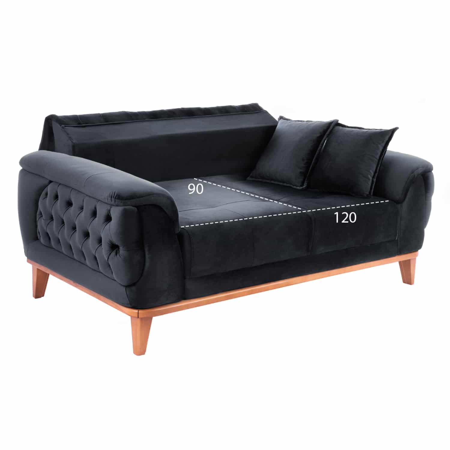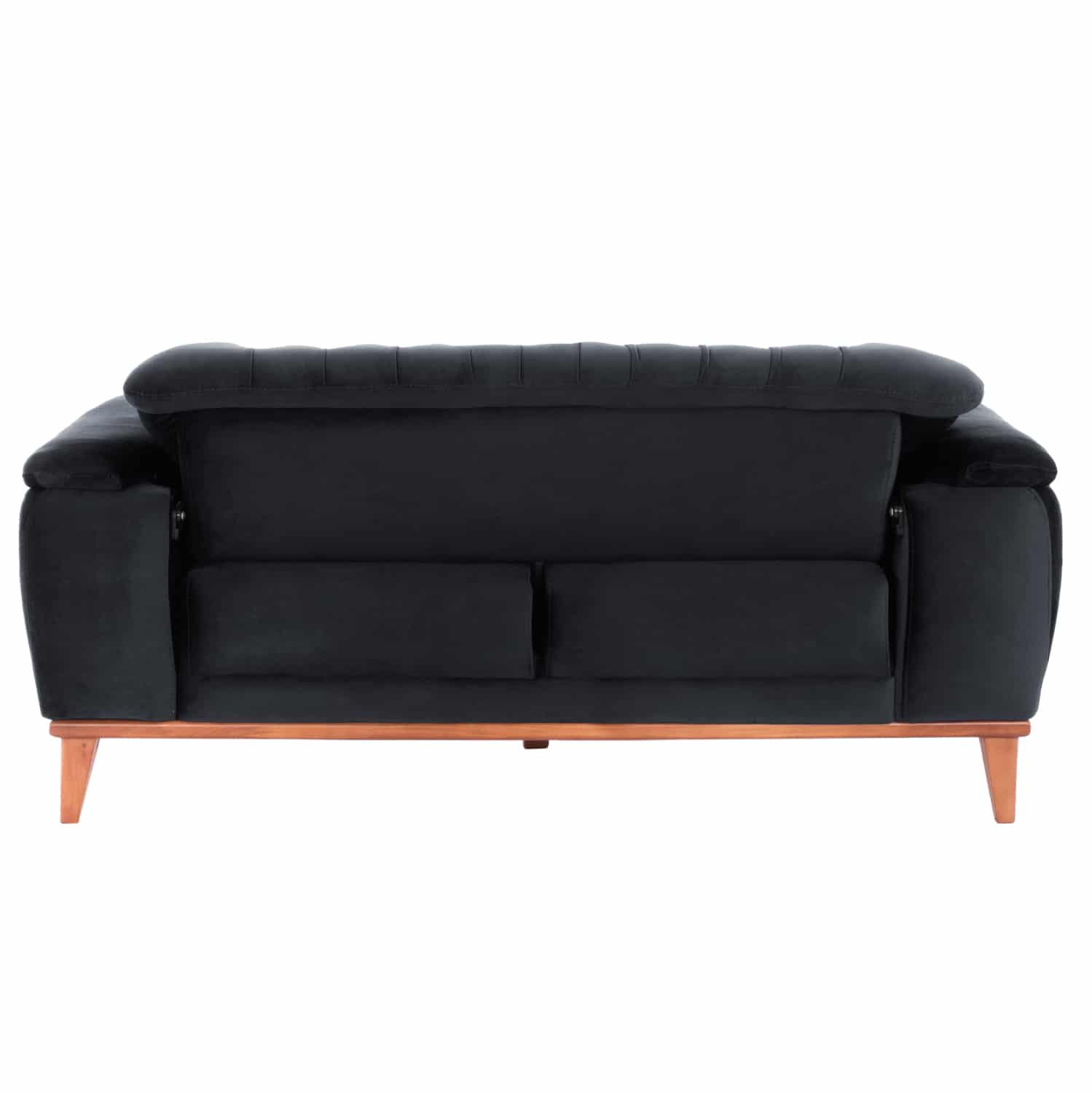 Αλλά δεν είναι μόνο το χρώμα και το καπιτονέ που κάνουν αυτόν τον καναπέ να ξεχωρίζει. Τα πόδια είναι ψηλά και ακριβώς πάνω από τα πόδια υπάρχει ένα ξύλινο πλαίσιο που διατρέχει ολόκληρο τον καναπέ, σε φυσικό χρώμα ξύλου, με αποτέλεσμα να δημιουργείται μια πανέμορφη διχρωμία με το ΜΑΥΡΟ της επένδυσης.