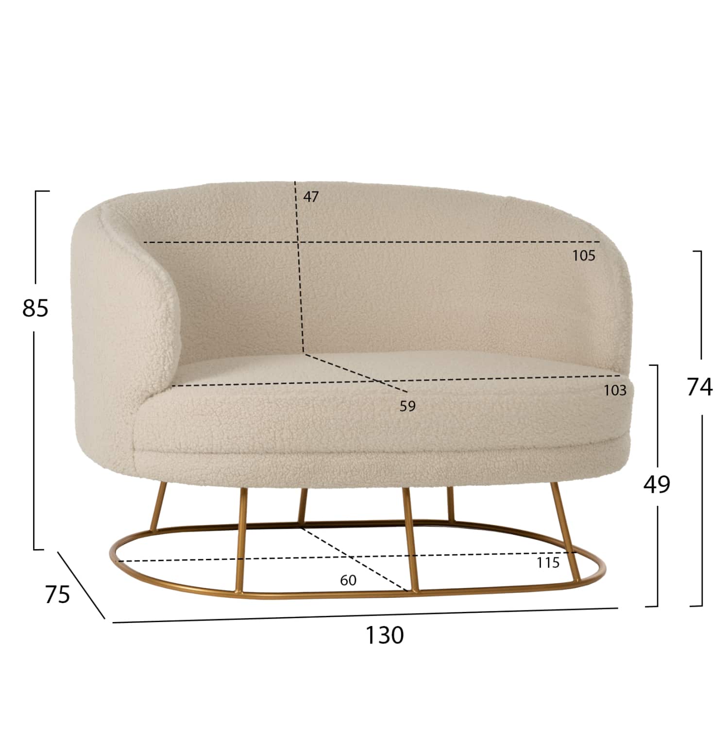 Ο 2-θέσιος καναπές ARIEN είναι μια μοντέρνα και στιλάτη πρόταση που θα αφήσει το στίγμα της σε όποιο σαλόνι κι αν τοποθετηθεί. Το σχεδόν οβάλ του σχήμα με την ανάλογη μεταλλική της βάση, σε συνδυασμό με την χαμηλή πλάτη και τα ψηλά μπράτσα, χωράνε 2 άτομα και προσφέρουν άνεση και στυλ. Το ουδέτερο ΕΚΡΟΥ χρώμα με το χρυσό της βάσης μπορεί να συνδυαστεί με πληθώρα άλλων χρωμάτων στην διακόσμηση του σαλονιού.