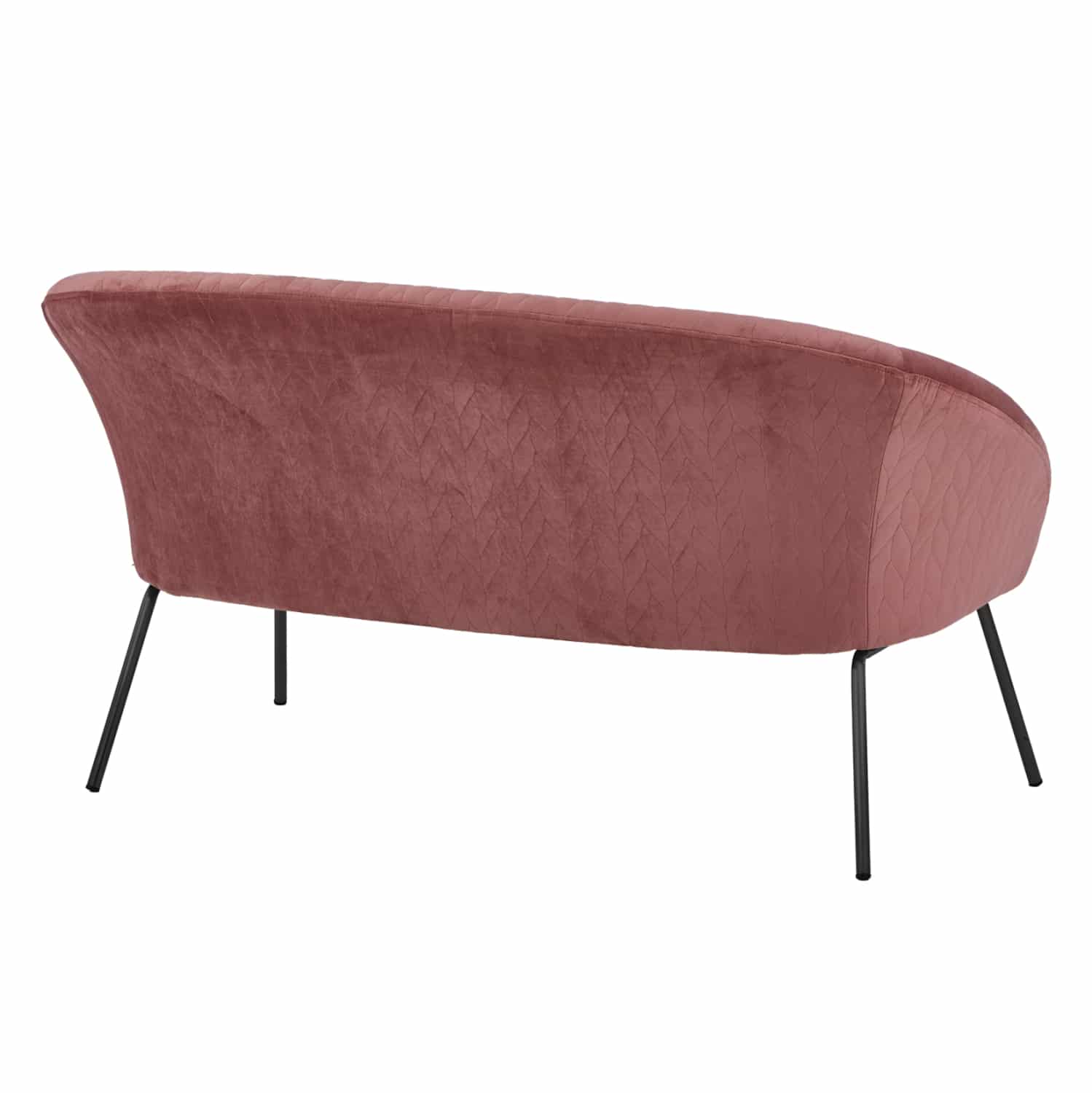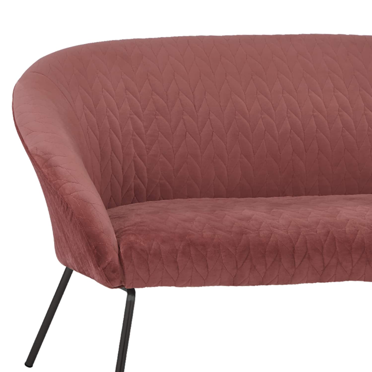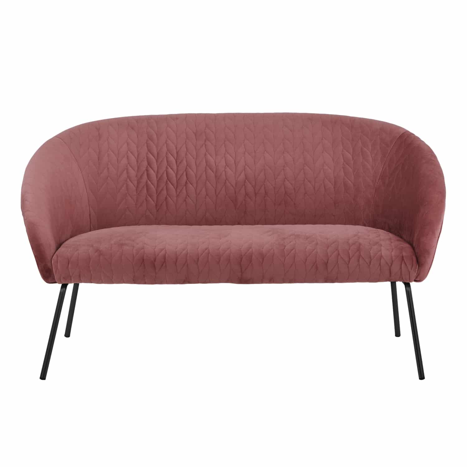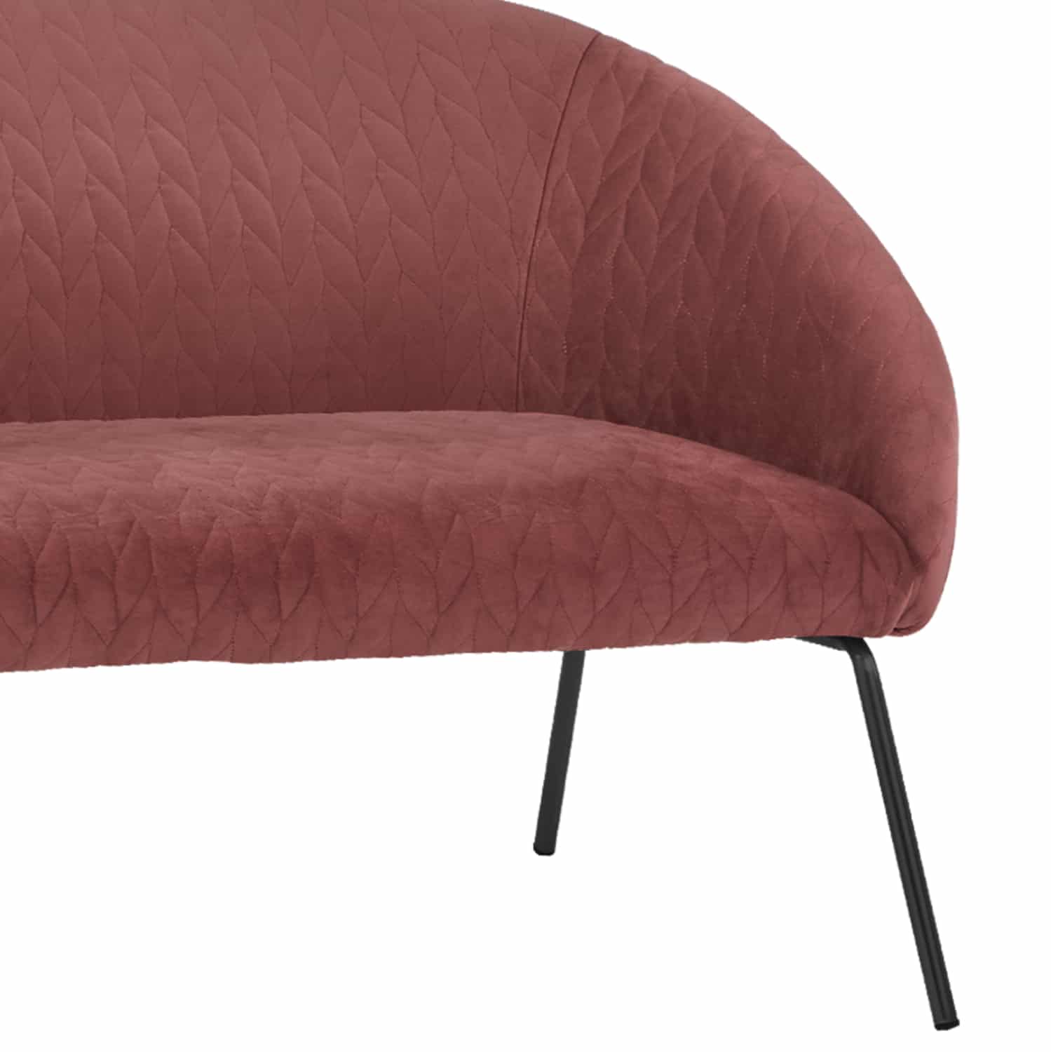 Διθέσιος καναπές JOYCE με ύφασμα βελούδο σε απόχρωση σάπιου μήλου και μεταλλικά πόδια σε μαύρη απόχρωση.