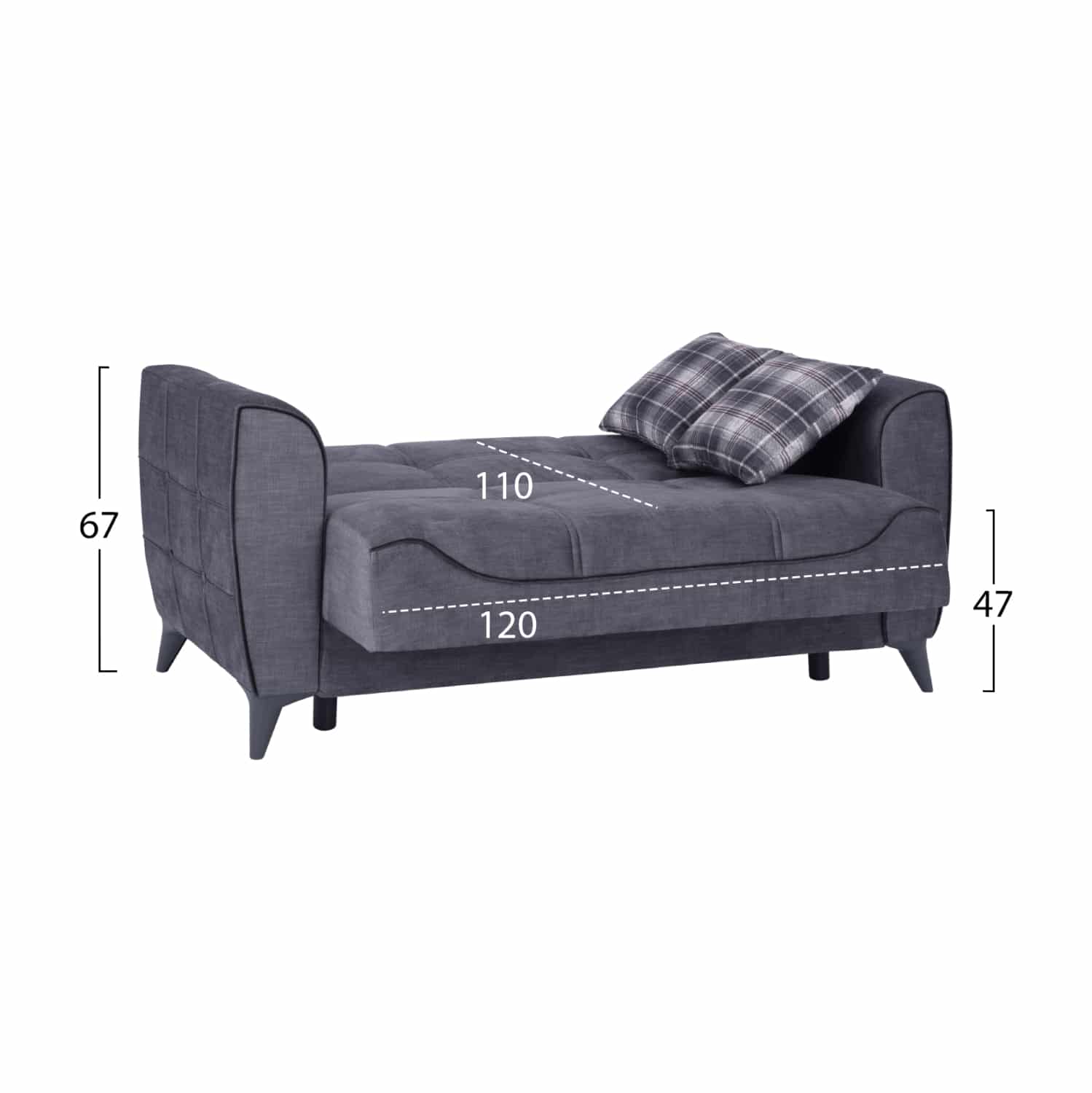 ΚΑΝΑΠΕΣ 2ΘΕΣΙΟΣ JUANA HM3166.20 ΓΚΡΙ ΜΕ ΣΚΟΥΡΟ ΓΚΡΙ ΡΕΛΙ 156x80x88 εκ.