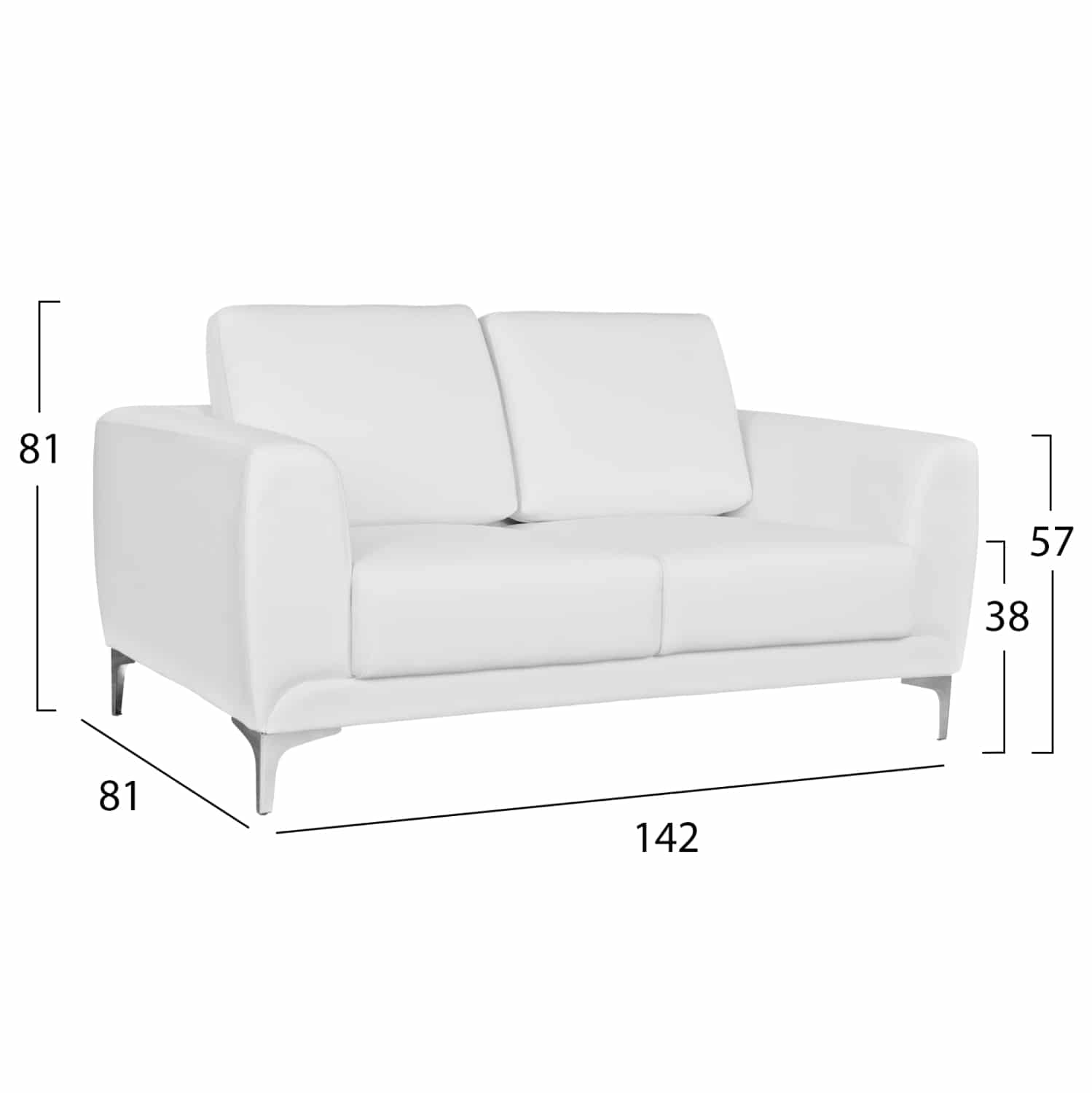 Καναπές διθέσιος με τεχνόδερμα σε λευκή απόχρωση 142x81x81 εκ.