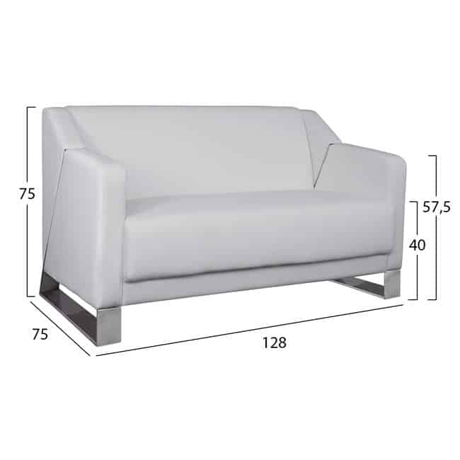 Καναπές διθέσιος με τεχνόδερμα σε λευκή απόχρωση 128x75x75 εκ.