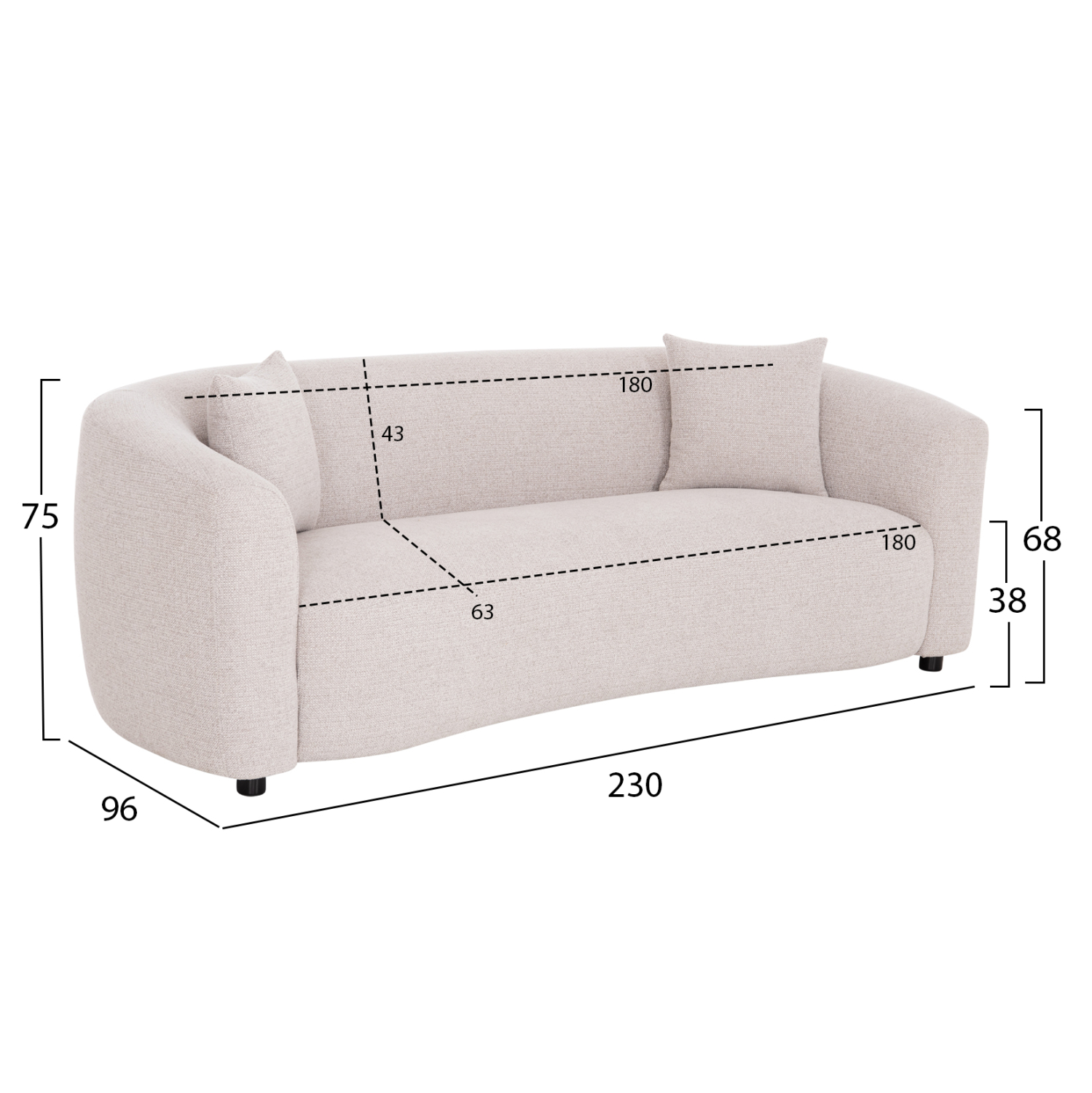 • Οι πλούσιες διαστάσεις που προσφέρουν άνετο κάθισμα για τρία άτομα.