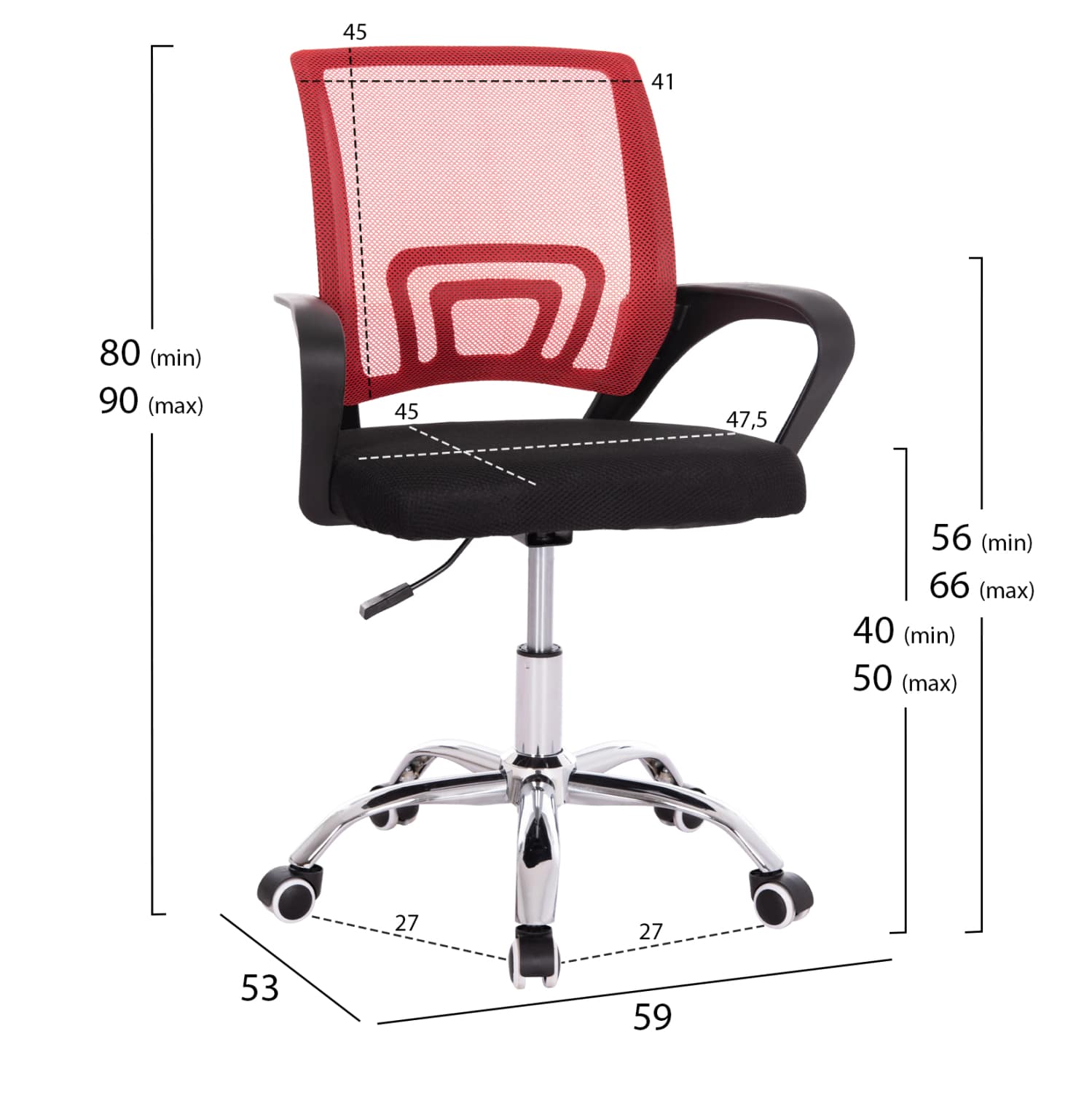 ΚΑΡΕΚΛΑ ΓΡΑΦΕΙΟΥ BRISTONE HM1058.37 ΠΟΔΙ ΧΡΩΜΙΟΥ-ΚΟΚΚΙΝΗ 59x53x80-90Υεκ.