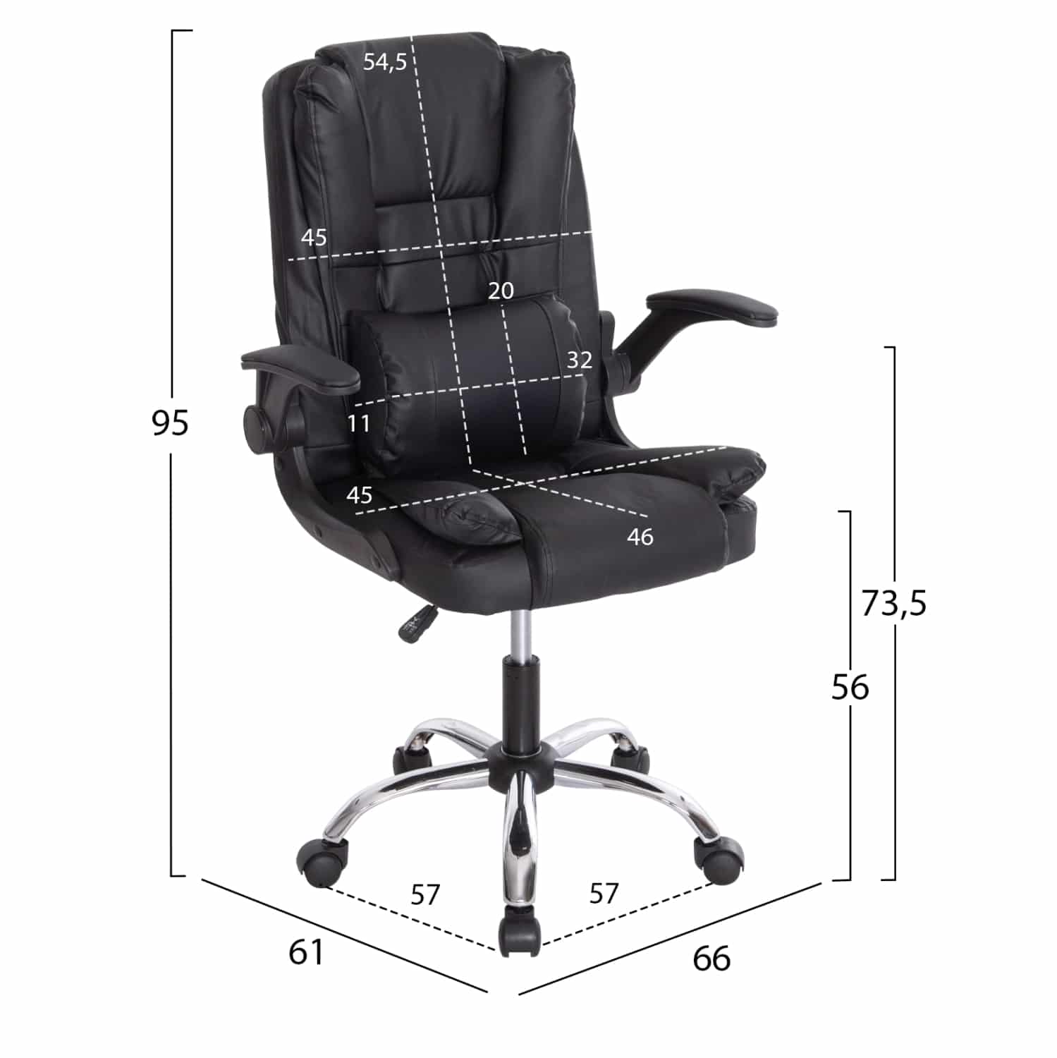 ΚΑΡΕΚΛΑ ΓΡΑΦΕΙΟΥ CANAN HM1201 ΜΑΥΡO PVC-ΒΑΣΗ ΧΡΩΜΙΟΥ 66x61x105Υεκ.
