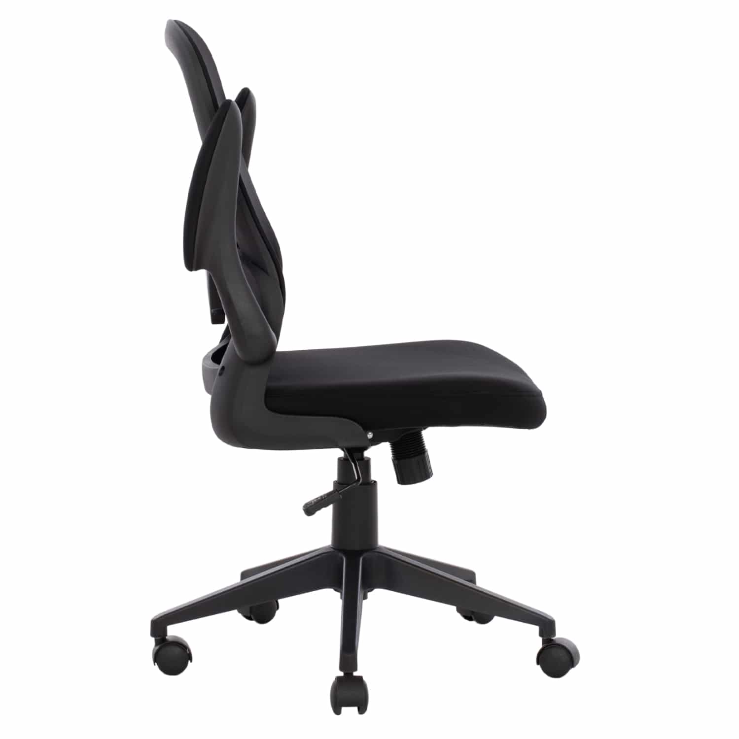 Αυτή είναι η καρέκλα γραφείου ΗΜ1178.01. Μια καρέκλα σε μαύρο χρώμα που θα ενθουσιάσει τους χρήστες της. Διαθέτει ψηλή και εργονομική πλάτη επενδυμένη με διάτρητο ύφασμα mesh, φαρδύ και αναπαυτικό κάθισμα επίσης επενδυμένο με mesh, και πολύ ψηλά μπράτσα επίπεδα που είναι μονταρισμένα στην πλάτη της καρέκλας και θα σας ξεκουράσουν όταν το θελήσετε. Η καρέκλα έχει όλες τις βασικές ρυθμίσεις, δηλαδή ρύθμιση ύψους και ανάκλιση με κλείδωμα στην θέση που σας βολεύει, μέσω δύο μοχλών κάτω από το κάθισμα. Ωστόσο, το επιπλέον χαρακτηριστικό αυτής της καρέκλας είναι ότι διαθέτει στήριγμα για την μέση, το οποίο ρυθμίζεται σε ύψος μέσω ενός μοχλού στο πίσω μέρος της πλάτης!