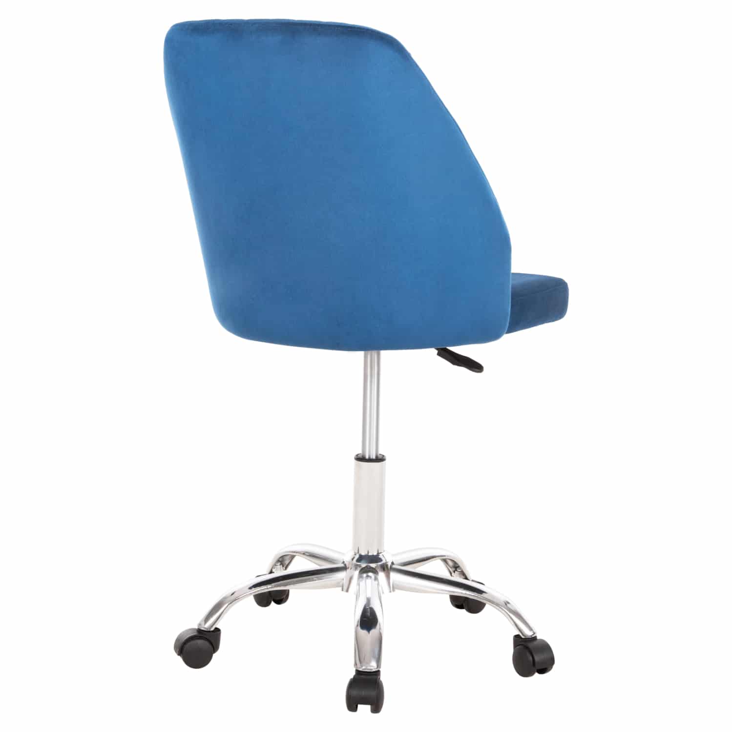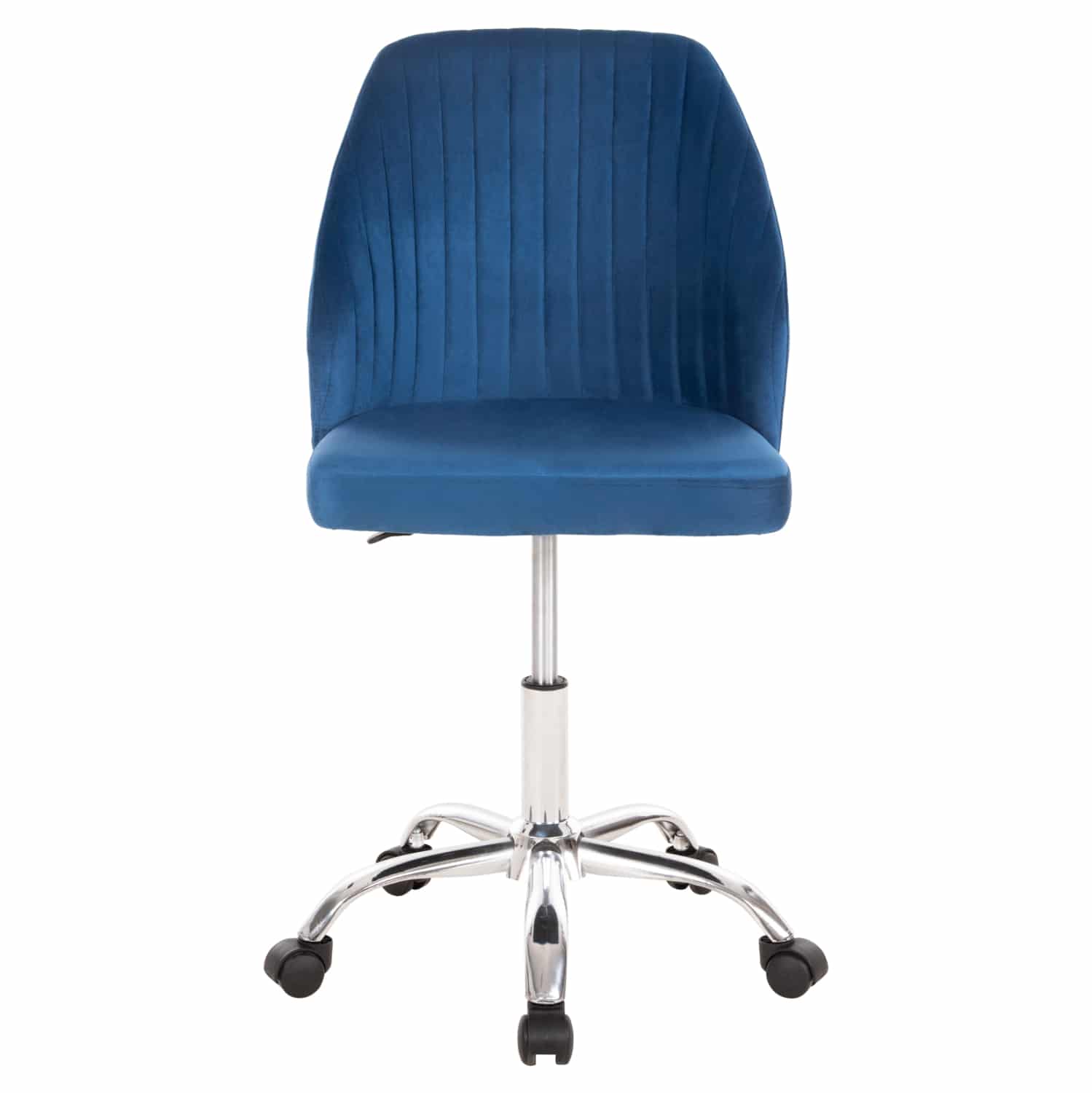 H HOLLIS είναι μια όμορφη καρέκλα γραφείου χωρίς μπράτσα. Η πλάτη είναι μεσαίου ύψους με καπιτονέ τεχνοτροπία και κυρτό σχεδιασμό για άνεση κατά την χρήση και υποστηρίζει ολόκληρο τον κορμό σας, ενώ είναι επενδυμένη με υψηλής ποιότητας βελούδινο ύφασμα σε ΜΠΛΕ χρώμα, όπως επίσης και το φαρδύ και αναπαυτικό κάθισμα. Η βάση είναι χρωμιωμένη με 5 ακτίνες και μαύρα ροδάκια.