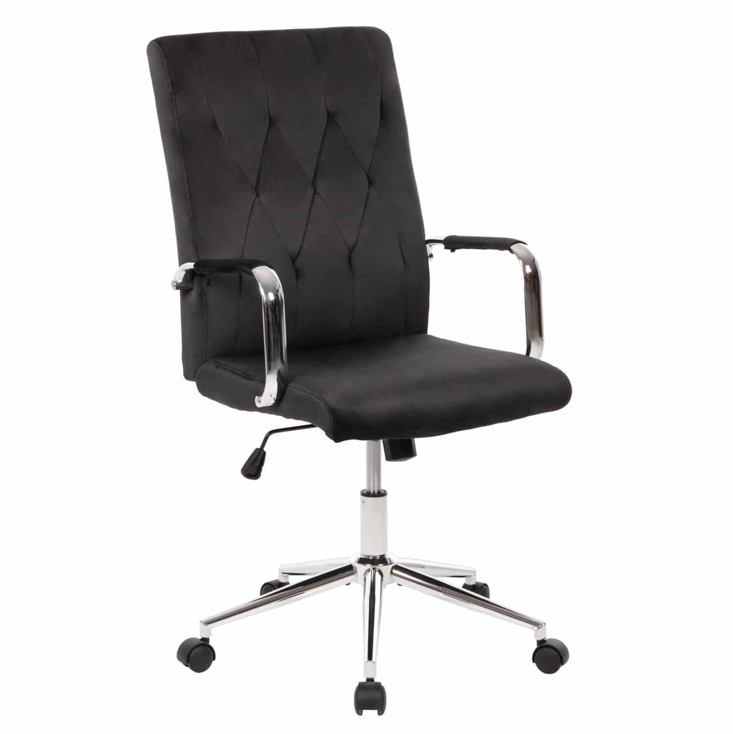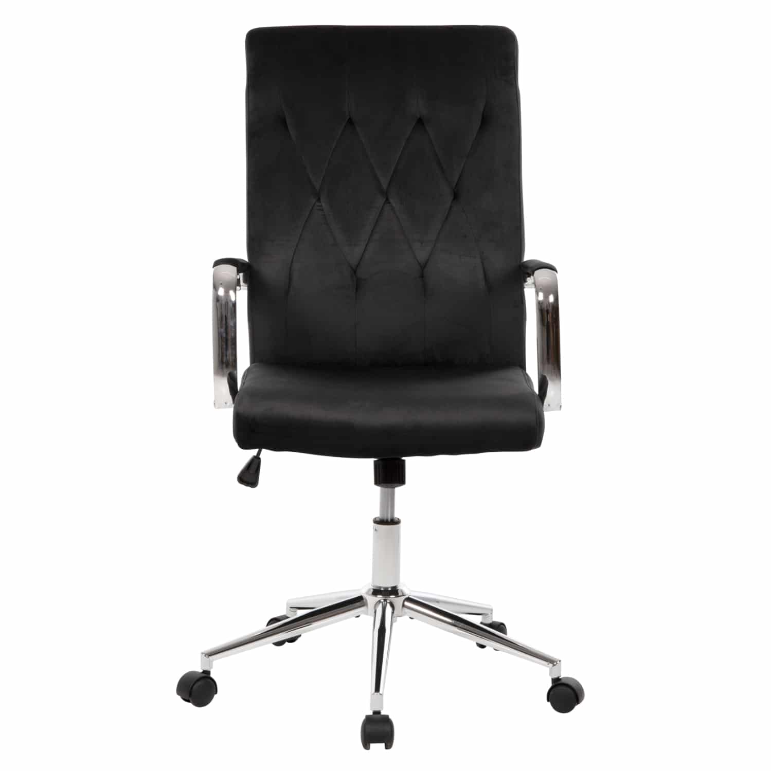 Διευθυντική καρέκλα γραφείου “JOSEF” σε ΜΑΥΡΟ χρώμα. Μια όμορφη καρέκλα γραφείου με ψηλά επίπεδα inox μπράτσα με στρογγυλεμένες γωνίες, επενδυμένα με βελούδινο ύφασμα. Η πλάτη είναι άνετη και ψηλή με «μαξιλάρι» από αφρώδη υλικά για άνεση κατά την χρήση και υποστηρίζει ολόκληρο τον κορμό σας, ενώ είναι επενδυμένη με βελούδινο ύφασμα, όπως επίσης και το φαρδύ και αναπαυτικό κάθισμα με την αναπαυτική επιφάνεια. Η inox γυαλιστερή βάση και η ανάρτηση με την ρύθμιση ύψους προσθέτουν μια αίσθηση πολυτέλειας που είναι πάντα ευπρόσδεκτη για κάθε χώρο, ενώ ο μηχανισμός της καρέκλας με τον καλαίσθητο μεταλλικό μοχλό, προσφέρει ρύθμιση ανάκλισης, για άνετη και ευχάριστη πολύωρη χρήση! Ιδανική για επαγγελματικούς χώρους κυρίως, αλλά ακόμα και για το γραφείο σας στο σπίτι εάν περνάτε αρκετές ώρες στον υπολογιστή και θέλετε μια όμορφη και πλούσια καρέκλα γραφείου.