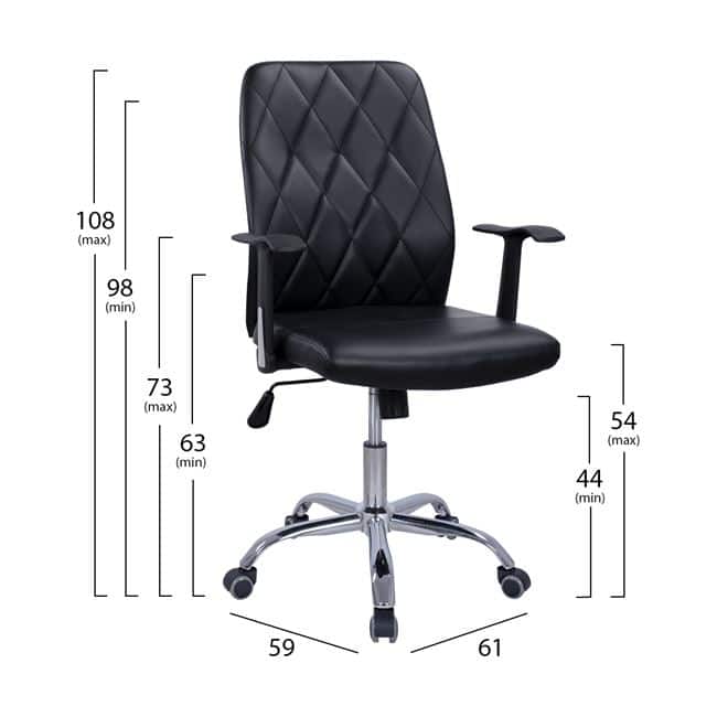 ΚΑΡΕΚΛΑ ΓΡΑΦΕΙΟΥ RAYA HM1153.01 ΜΕ ΠΟΔΙΑ ΧΡΩΜΙΟΥ ΣΕ ΜΑΥΡΗ ΑΠΟΧΡΩΣΗ 61Χ59Χ98-108Y ΕΚ HM1153.01