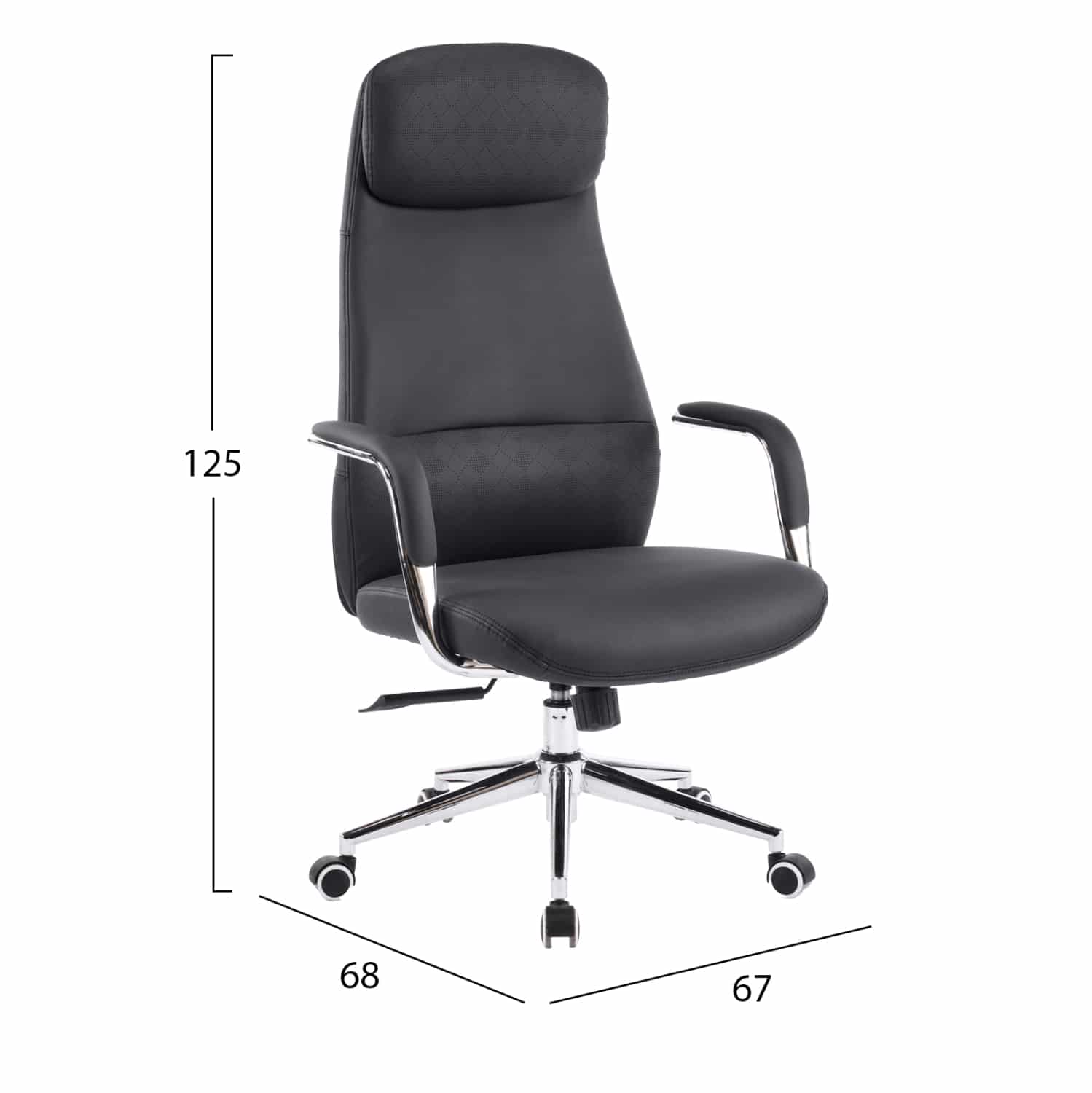 ΚΑΡΕΚΛΑ ΓΡΑΦΕΙΟΥ SONTY HM18354.01 ΜΑΥΡΟ PU ΔΕΡΜΑ–ΒΑΣΗ ΧΡΩΜΙΟΥ 64x68x125Υεκ HM18354.01