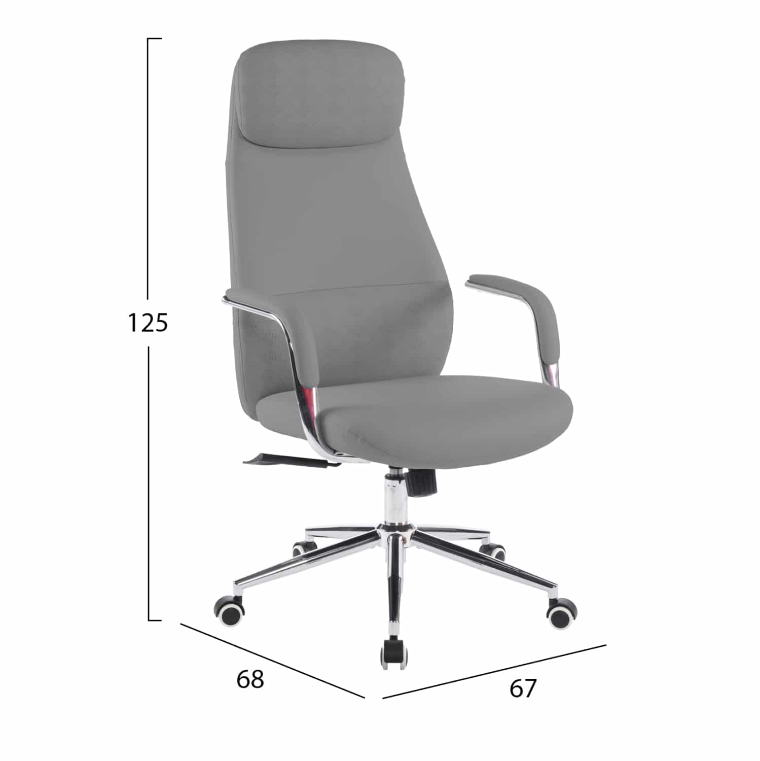 ΚΑΡΕΚΛΑ ΓΡΑΦΕΙΟΥ SONTY HM18354.10 ΑΝΟΙΧΤΟ ΓΚΡΙ PU ΔΕΡΜΑ–ΒΑΣΗ ΧΡΩΜΙΟΥ 64x68x125Υεκ HM18354.10