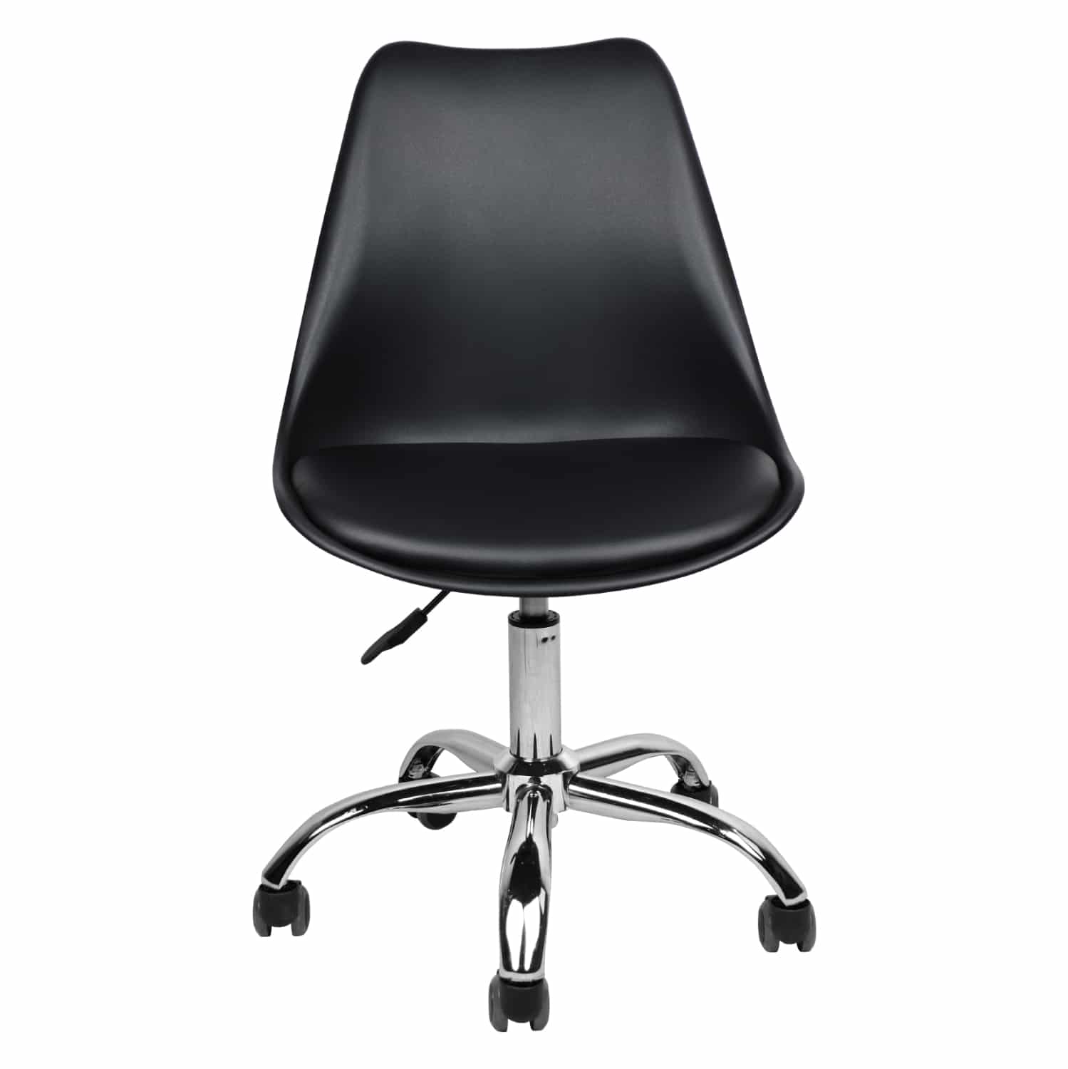 Το αμορτισέρ και η βάση είναι ατσάλινα με ότι αυτό συνεπάγεται για την ανθεκτικότητα και την στιβαρότητα της καρέκλας, ενώ τα ροδάκια είναι κι αυτά από πολυπροπυλένιο με μια στρώση μαλακής πολυουρεθάνης στην επιφάνεια για ομαλή και αθόρυβη κύλιση.