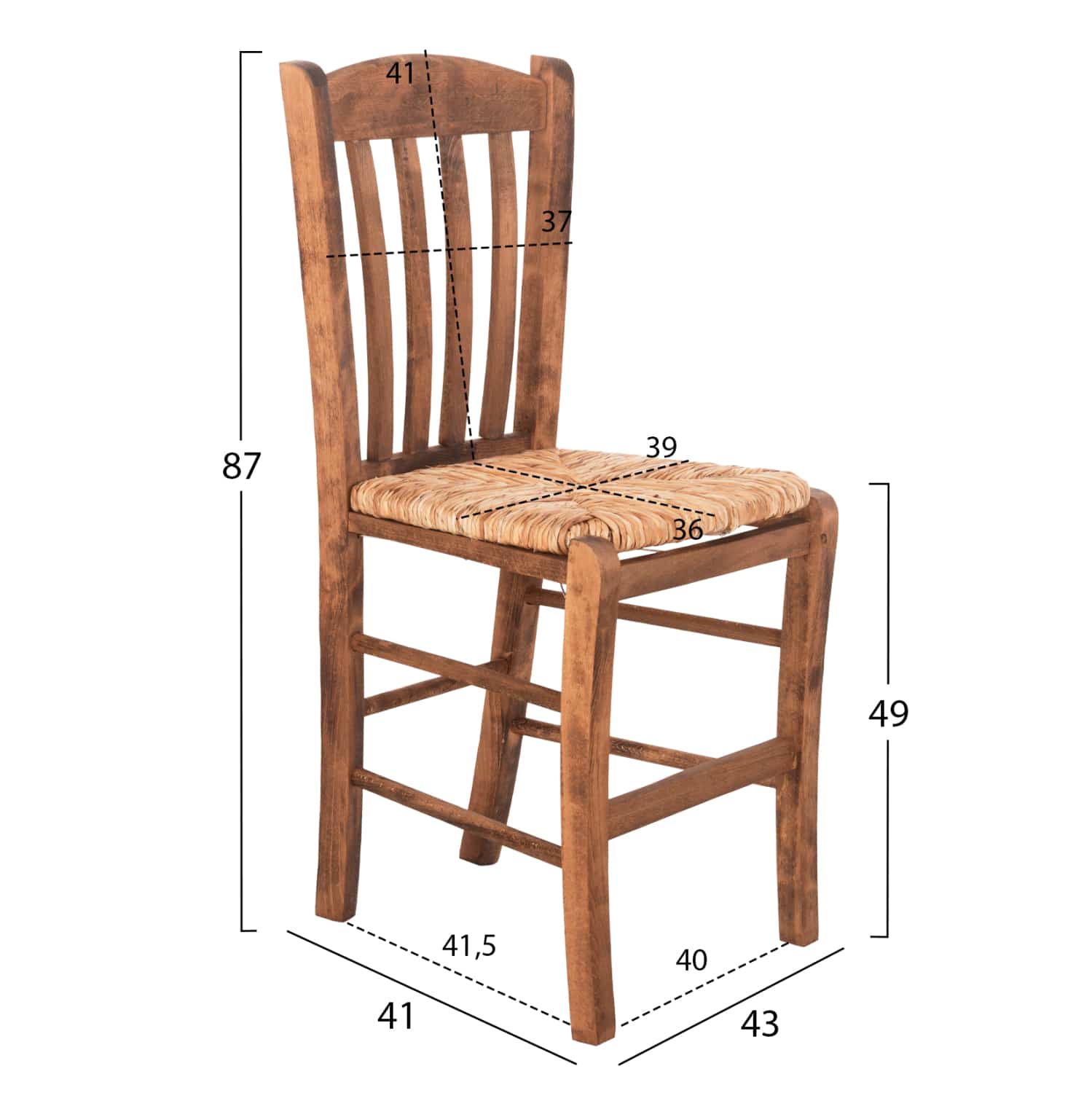 Η καρέκλα καφενείου MONTE, για επαγγελματική χρήση, είναι η παραδοσιακή καρέκλα από ξύλο εμποτισμένης οξιάς σε ΚΑΡΥΔΙ χρώμα. Η πλάτη έχει σχέδιο με κάθετα πηχάκια και αισθητικά είναι κατάλληλη για ταβέρνα, καφενείο, αλλά και γενικότερα για χώρους διακοσμημένους με το κλασικό Ελληνικό παραδοσιακό ύφος. Ο σκελετός είναι δεμένος με σύρμα για μεγαλύτερη αντοχή και ανθεκτικότητα στο πέρασμα του χρόνου, ενώ το κάθισμα είναι ψάθινο από ίνες seagrass.