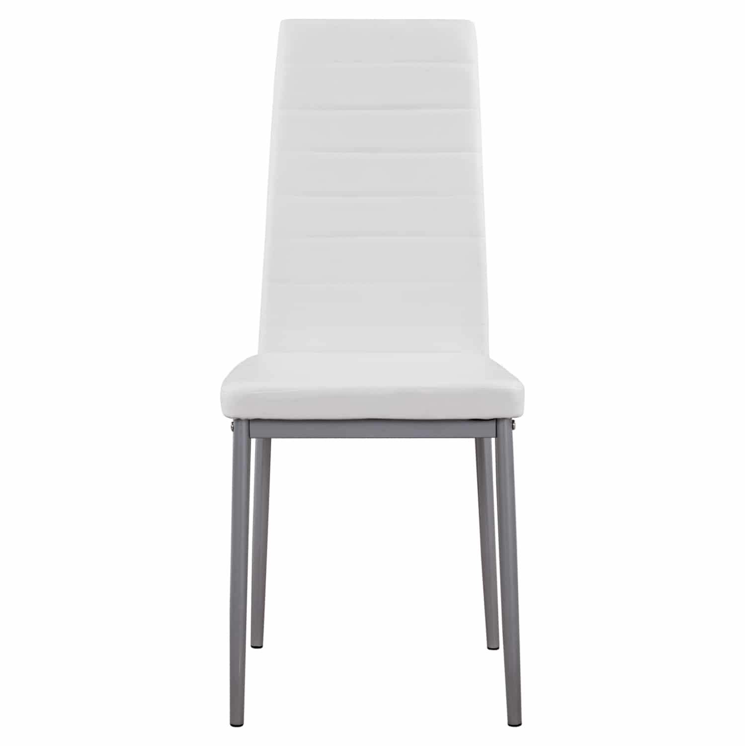 Καρέκλα κουζίνας από σκελετό μεταλλικό σε γκρι απόχρωση και επένδυση από δερματίνη σε λευκό χρώμα.
