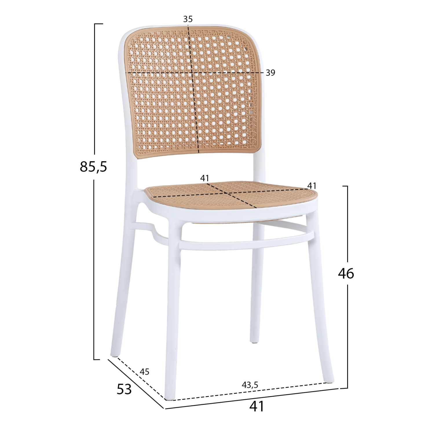 Η καρέκλα FLOW έχει όλα όσα θα θέλατε από ένα τέτοιο έπιπλο. Είναι ποιοτική και κομψή στην όψη, και σίγουρα τραβάει τα βλέμματα. Όλη η καρέκλα είναι από μονοκόμματο πολυπροπυλένιο σε ΛΕΥΚΟ χρώμα με ελαφρώς κυρτή και ψηλή πλάτη σε σχέδιο ψάθας πολυπροπυλενίου σε ΜΠΕΖ χρώμα. Το κάθισμα είναι σε ΜΠΕΖ απόχρωση και είναι επίσης σε στυλ ψάθας πολυπροπυλενίου. Η καρέκλα είναι στοιβαζόμενη, ελαφριά και άνετη, και θα γίνει το αγαπημένο κάθισμα σε όποιο χώρο κι αν τοποθετηθεί χάρη στην πρακτικότητά του. Ιδανική επιλογή και για επαγγελματική χρήση, όπως σε catering κτλ.