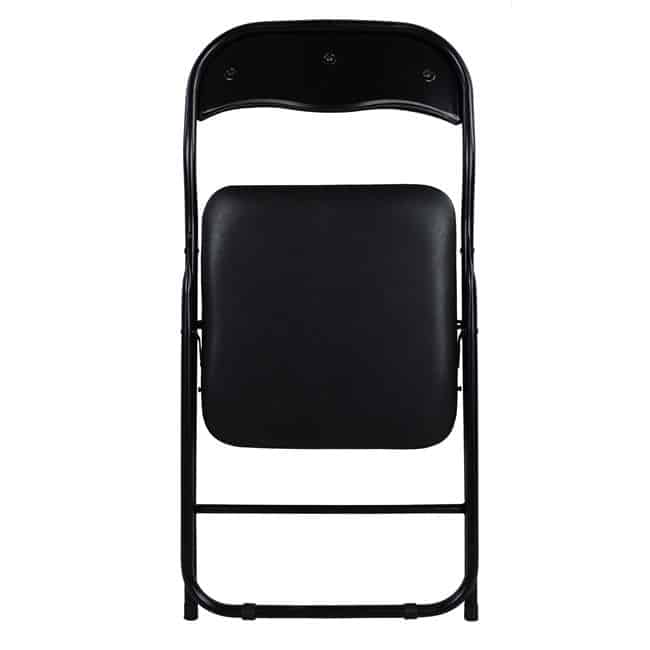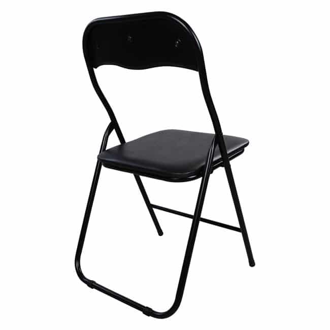 Καρέκλα μεταλλική πτυσσόμενη με επένδυση από PVC σε μαύρη απόχρωση.