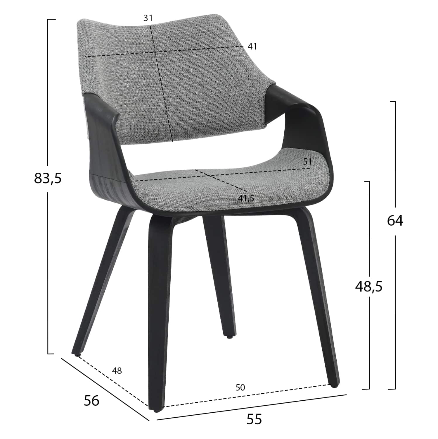 Η καρέκλα τραπεζαρίας NETTO με τον μοντέρνο σχεδιασμό της θα κερδίσει τις εντυπώσεις. Είναι κατασκευασμένη από κόντρα-πλακέ ξύλο σε brushed ΜΑΥΡΗ απόχρωση και επένδυση στην πλάτη και το κάθισμα με ΓΚΡΙ ύφασμα. Συνδυάστε την με ένα ωραίο τραπέζι και δημιουργήστε μια όμορφη και ποιοτική τραπεζαρία.