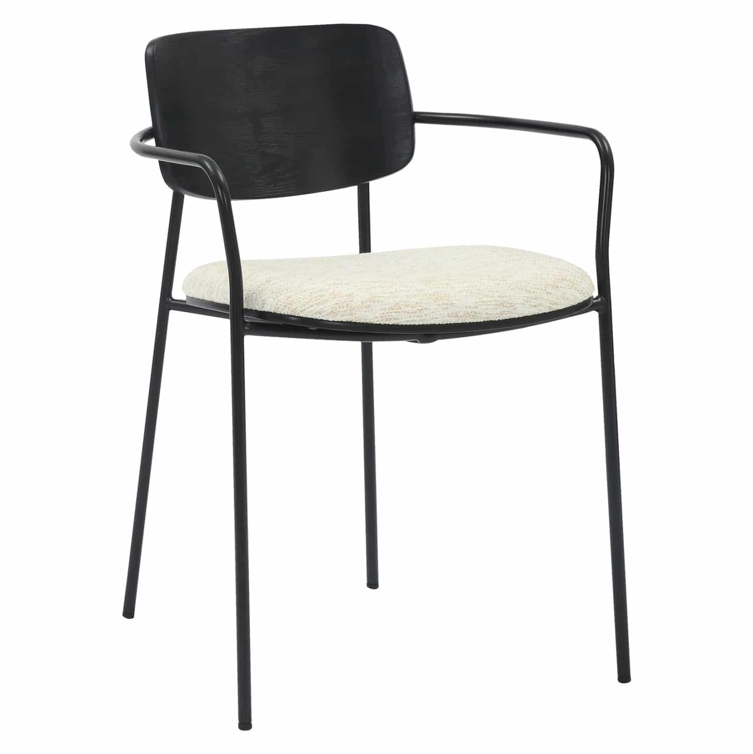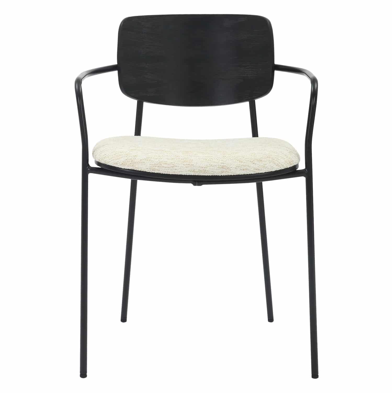 Η καρέκλα τραπεζαρίας VIKKI με τον λιτό σχεδιασμό της ενώνει αρμονικά τον μεταλλικό σκελετό σε ΜΑΥΡΟ χρώμα, με το υψηλής ποιότητας ΕΚΡΟΥ ύφασμα του καθίσματος και την ξύλινη πλάτη σε ΜΑΥΡΟ χρώμα. Συνδυάστε την με ένα ωραίο τραπέζι και δημιουργήστε μια όμορφη και ποιοτική τραπεζαρία.