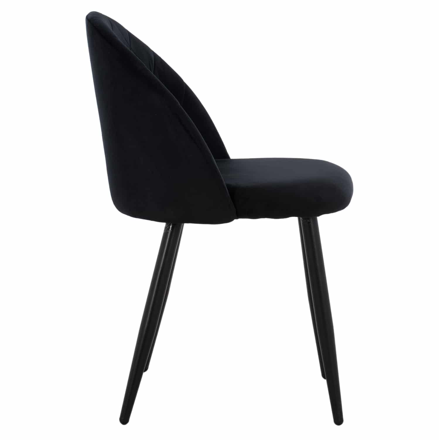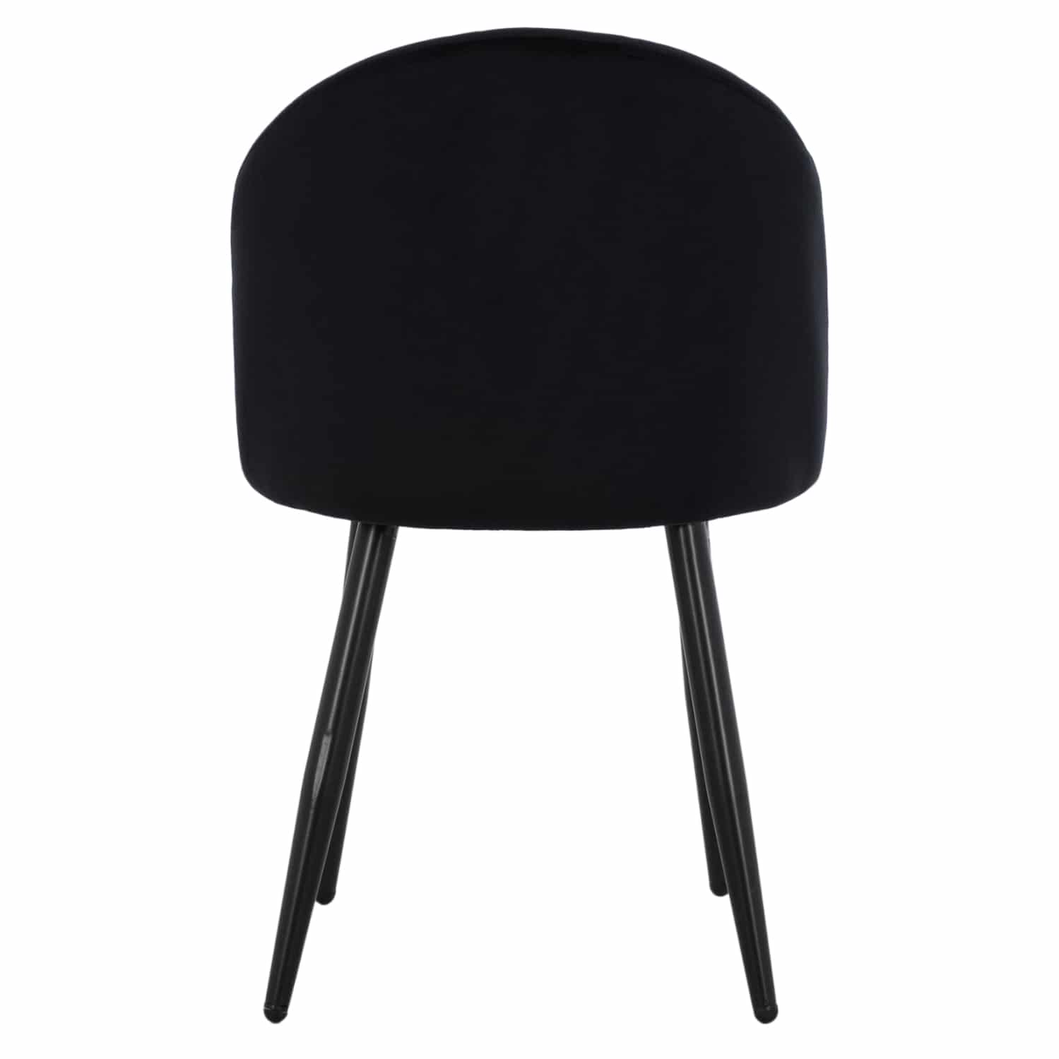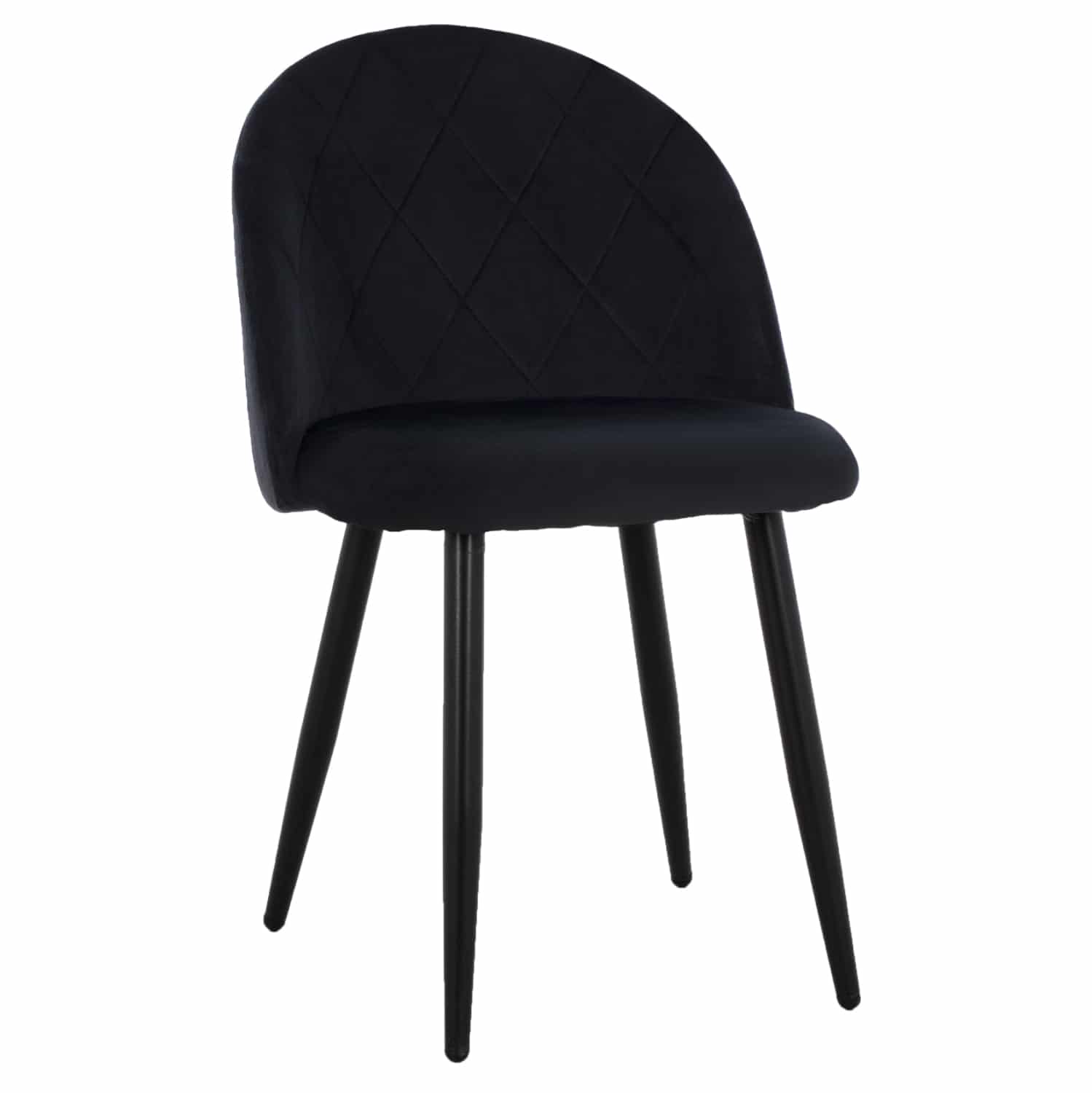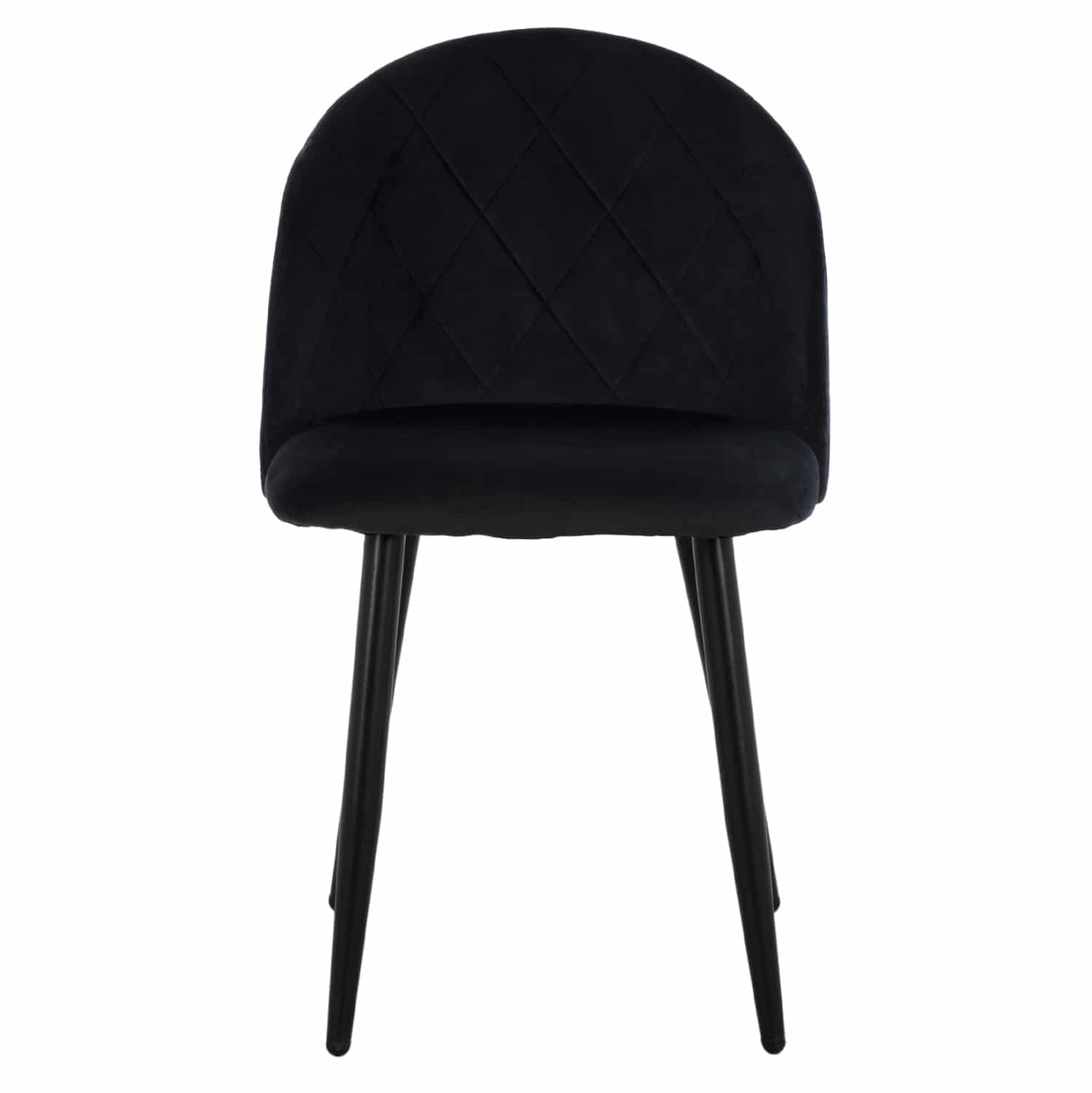 Καρέκλα επενδυμένη με ύφασμα βελούδο σε μάυρη απόχρωση και μεταλλικό μαύρο σκελετό.
