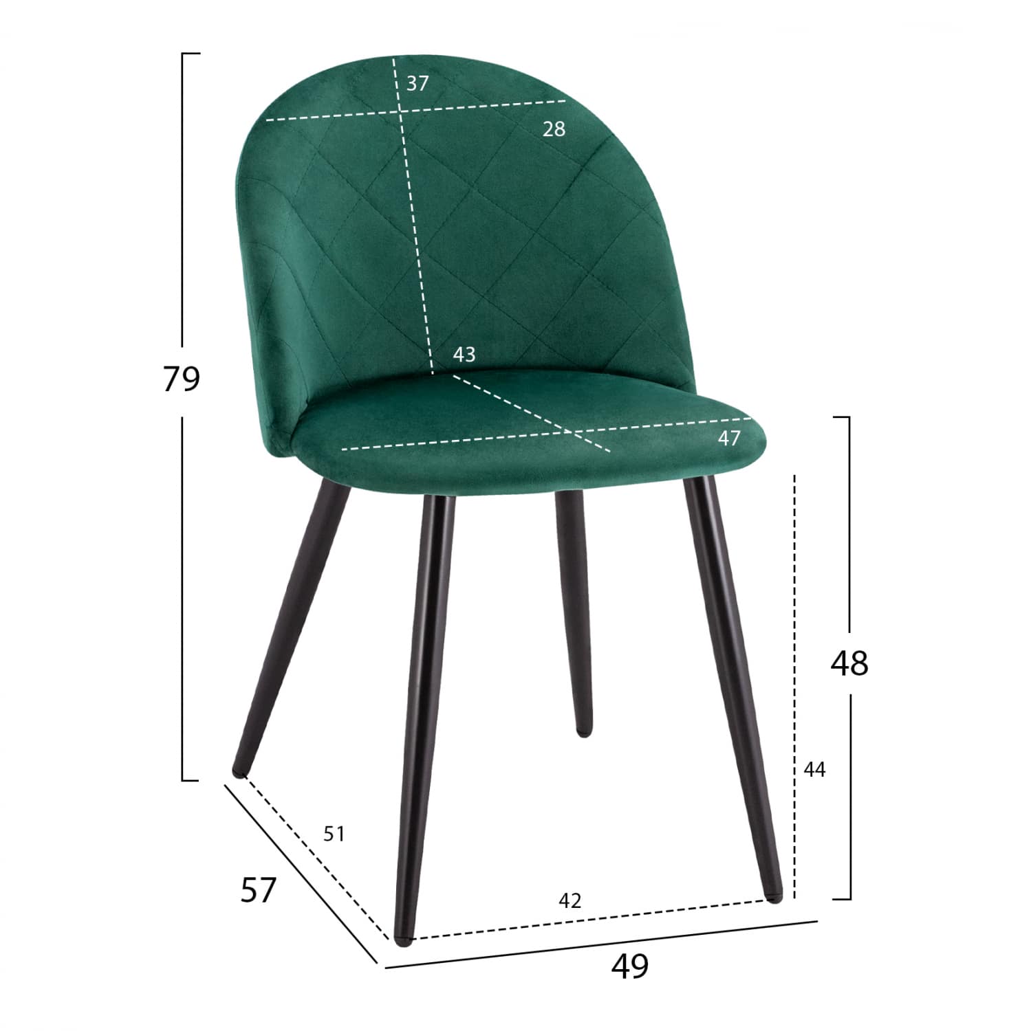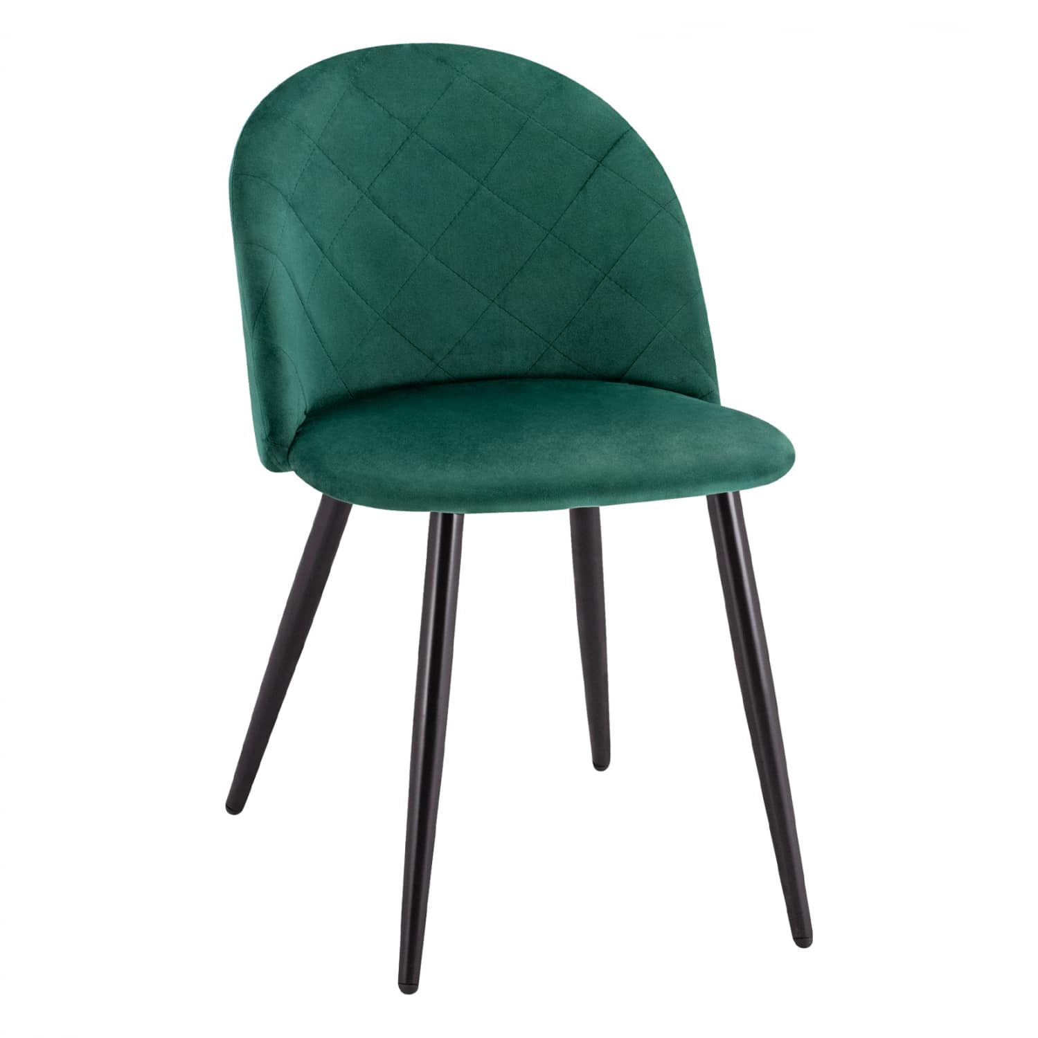 Καρέκλα επενδυμένη με ύφασμα βελούδο σε κυπαρισσί απόχρωση και μεταλλικό μαύρο σκελετό.