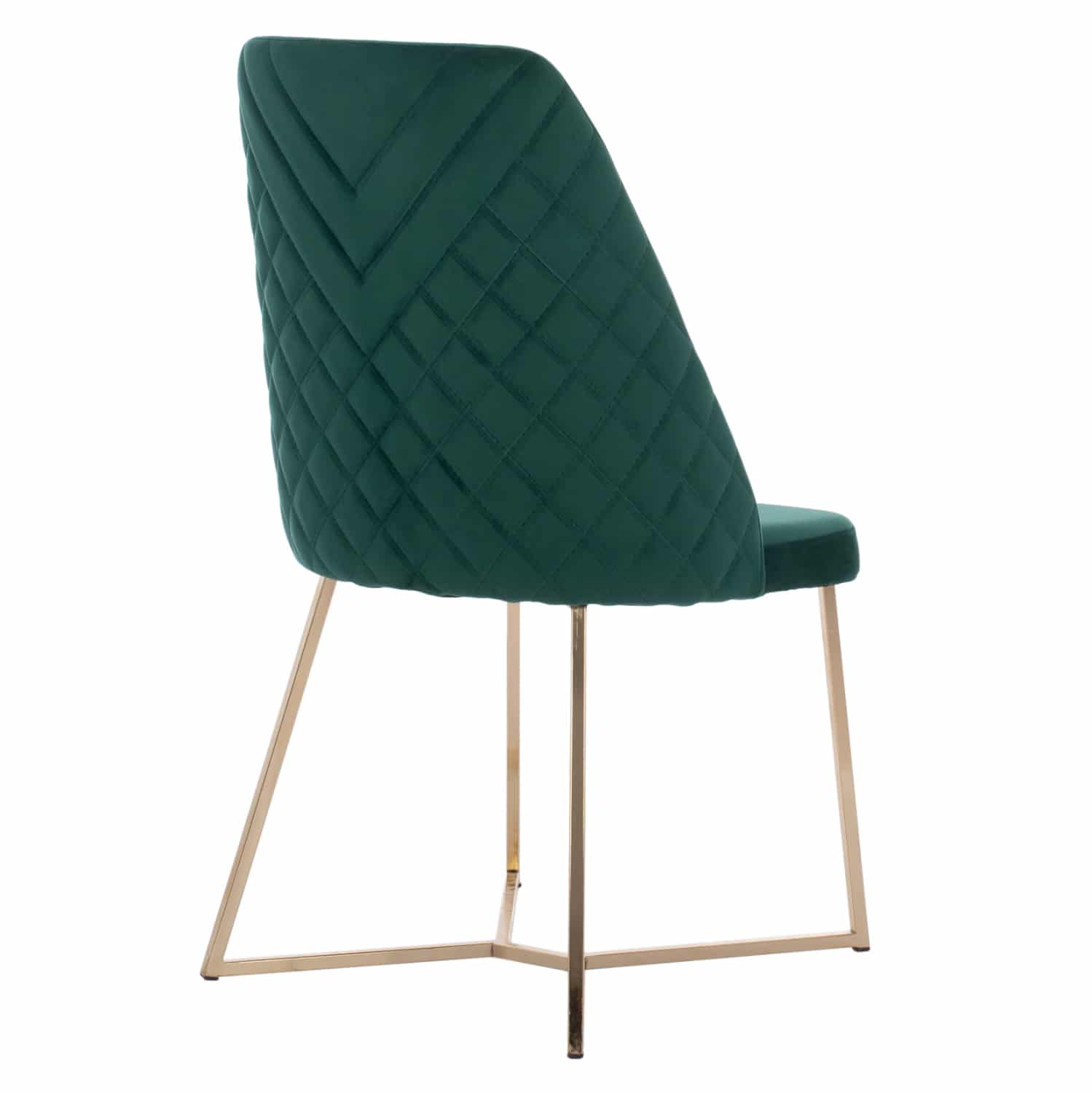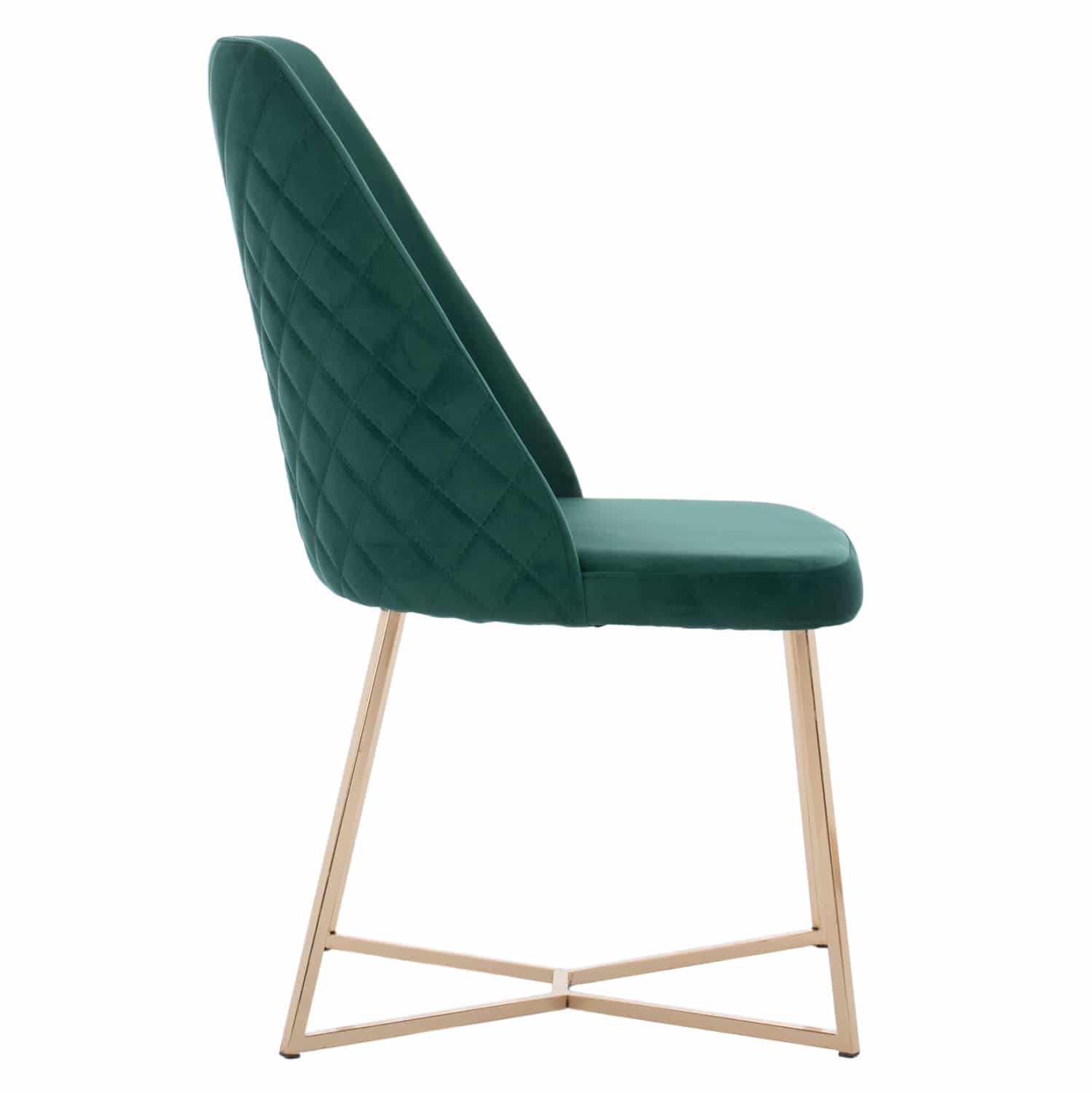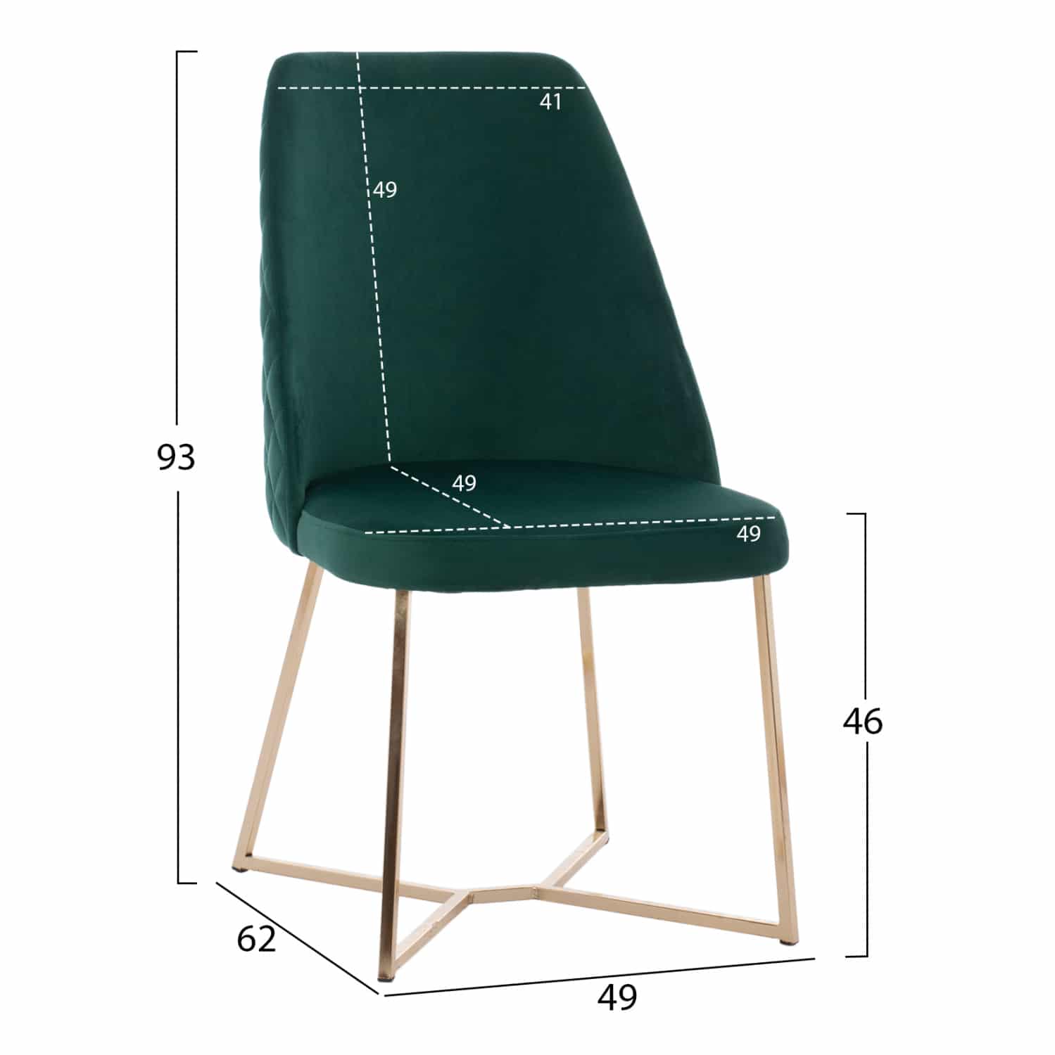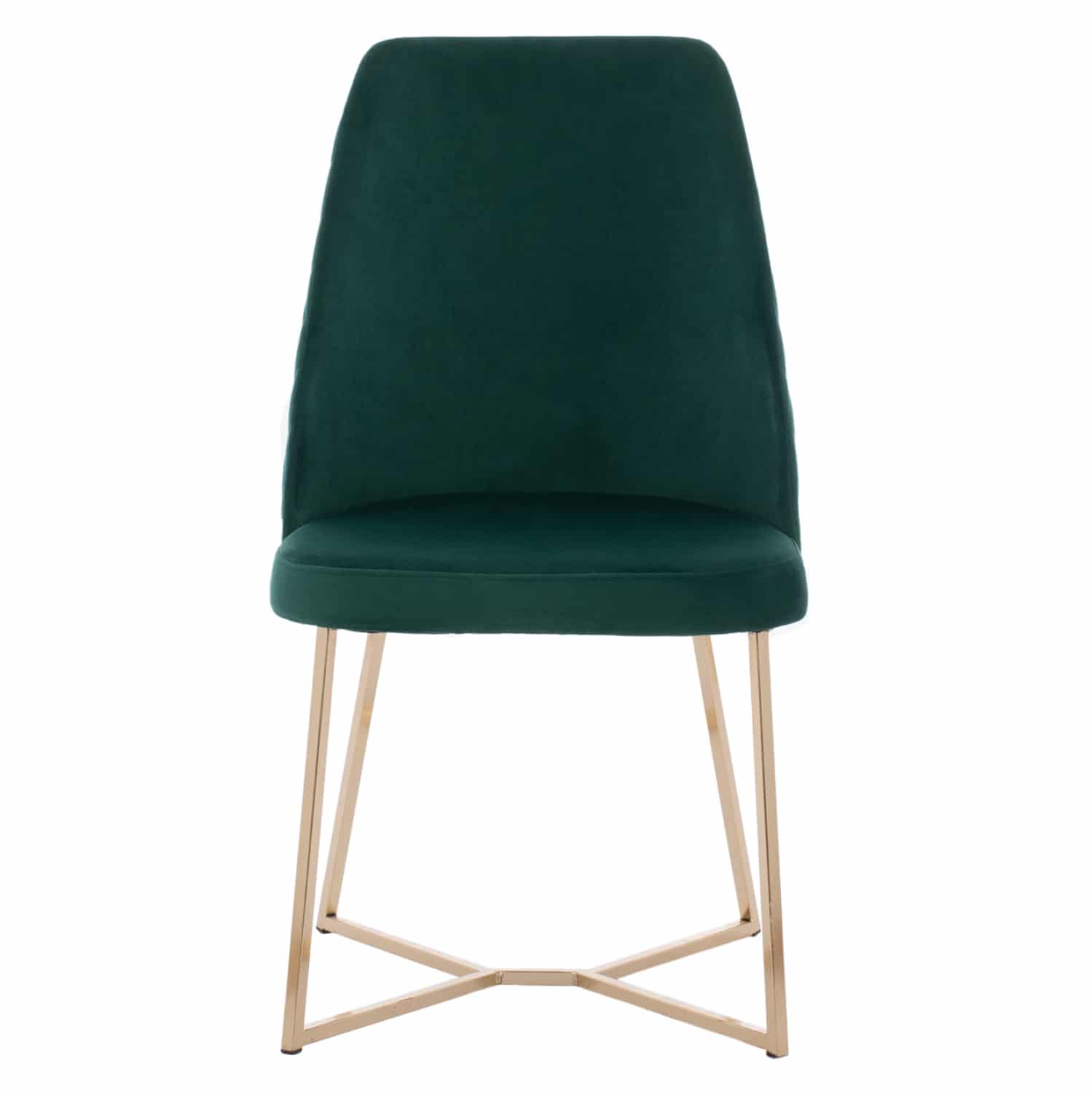 Καρέκλα ROSALIND σε ευχάριστο Κυπαρισσί χρώμα με μεταλλικά πόδια σε χρυσή απόχρωση. Τα 4 μεταλλικά πόδια συνδέονται μεταξύ τους με μια χιαστί διάταξη στο κάτω μέρος.