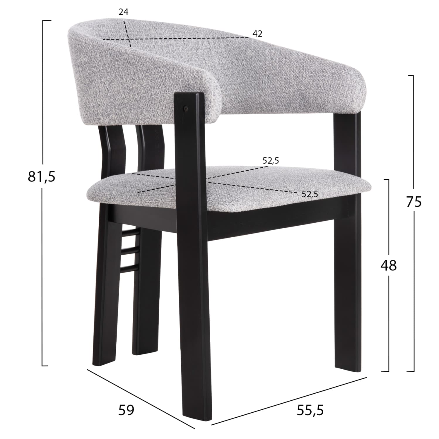 Διαστάσεις καθίσματος: 52,5×52,5 εκ.