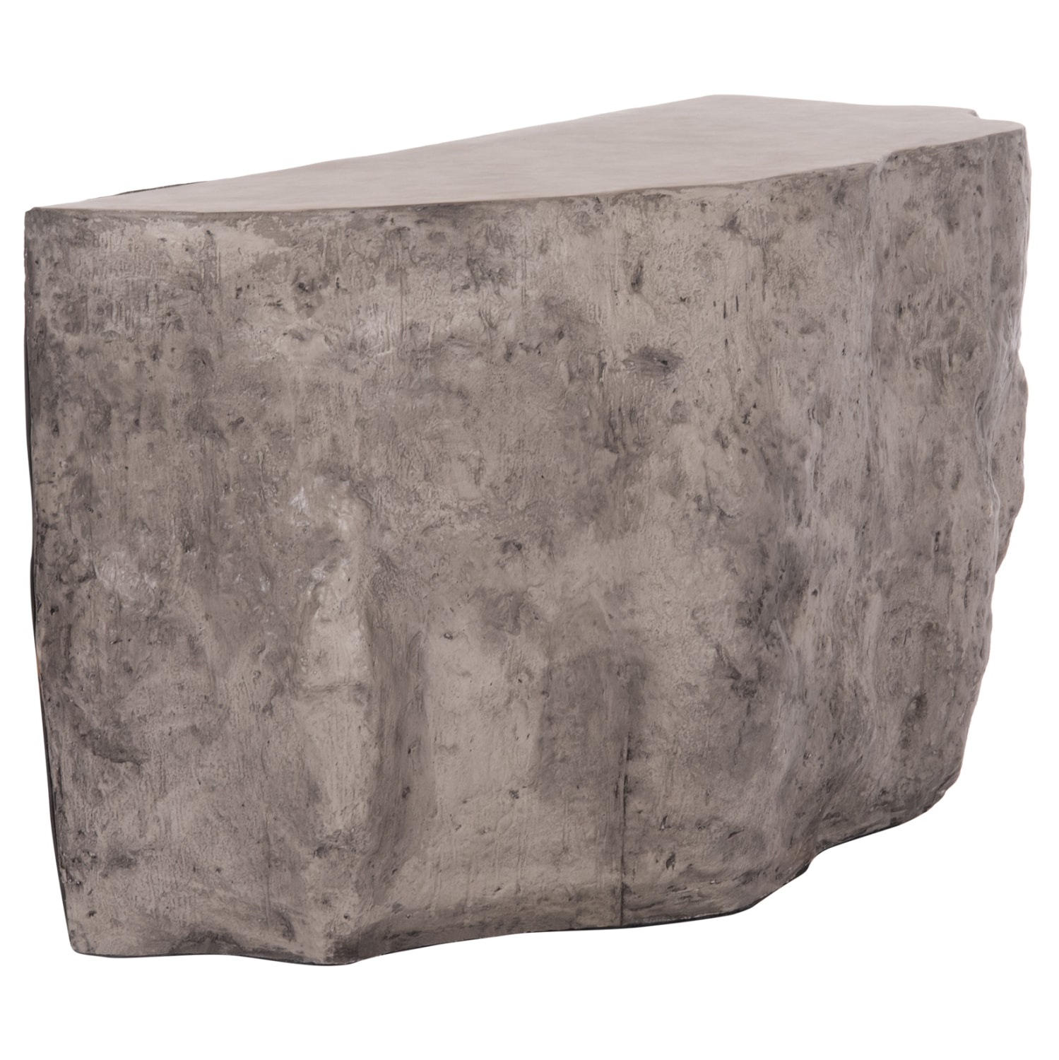 Η χειροποίητη κονσόλα INTERON έχει ακανόνιστο και συμπαγές σχήμα σαν βράχος. Είναι κατασκευασμένη εξολοκλήρου από Fiber Cement σε ΓΚΡΙ χρώμα με σαγρέ υφή στα πλαϊνά, που αποτελεί την πιο σύγχρονη τάση στην εσωτερική διακόσμηση. Τι είναι όμως η κονσόλα; Η κονσόλα είναι ένα κομψό, γραφικό, συμπαγές έπιπλο που μπορεί να τοποθετηθεί σε σχεδόν οποιοδήποτε δωμάτιο- κουζίνα, διάδρομο, κρεβατοκάμαρα, παιδικό δωμάτιο, σαλόνι, γραφείο, ακόμα και στο μπάνιο. Με αυτό, ο σχεδιασμός του χώρου γίνεται εκλεπτυσμένος, κομψός, πλήρως σκεπτόμενος. Η κονσόλα στο εσωτερικό χρησιμοποιείται τόσο ως μέρος ενός σετ με πολλά στοιχεία, όσο και ανεξάρτητα και επιλέγεται για τον γενικό σχεδιασμό του δωματίου.