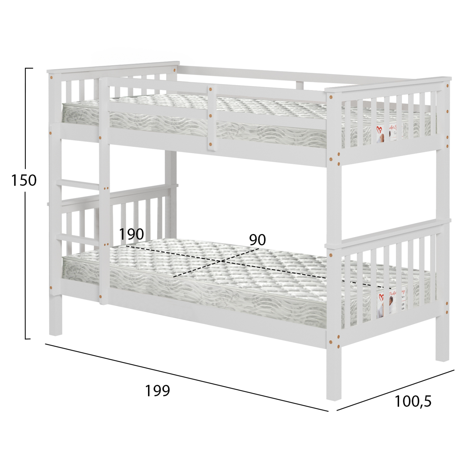 Διαστάσεις στρώματος 90×190 εκ (x2).—- Ύψος στρώματος: 19 εκ.