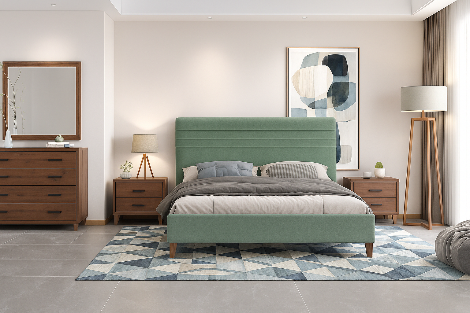 Κρεβάτι επενδεδυμένο με ξύλινα ποδαράκια Ν100, ελληνικής κατασκευής