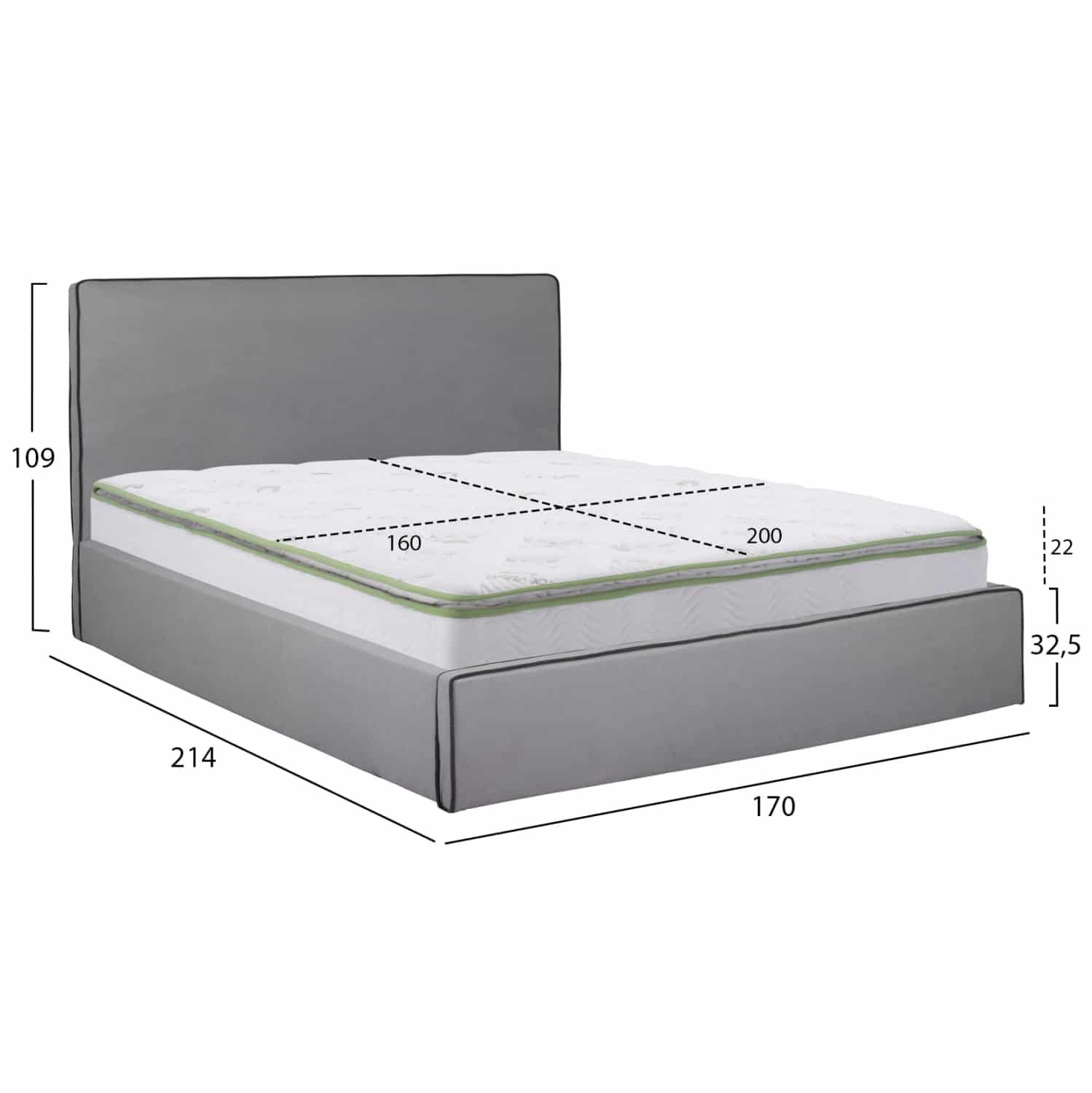 ΚΡΕΒΑΤΙ ΔΙΠΛΟ ΜΕ ΑΠΟΘ.ΧΩΡΟ & ΣΤΡΩΜΑ ALLIE HM21170 ΓΚΡΙ ΥΦΑΣΜΑ–ΓΙΑ 160×200εκ HM21170