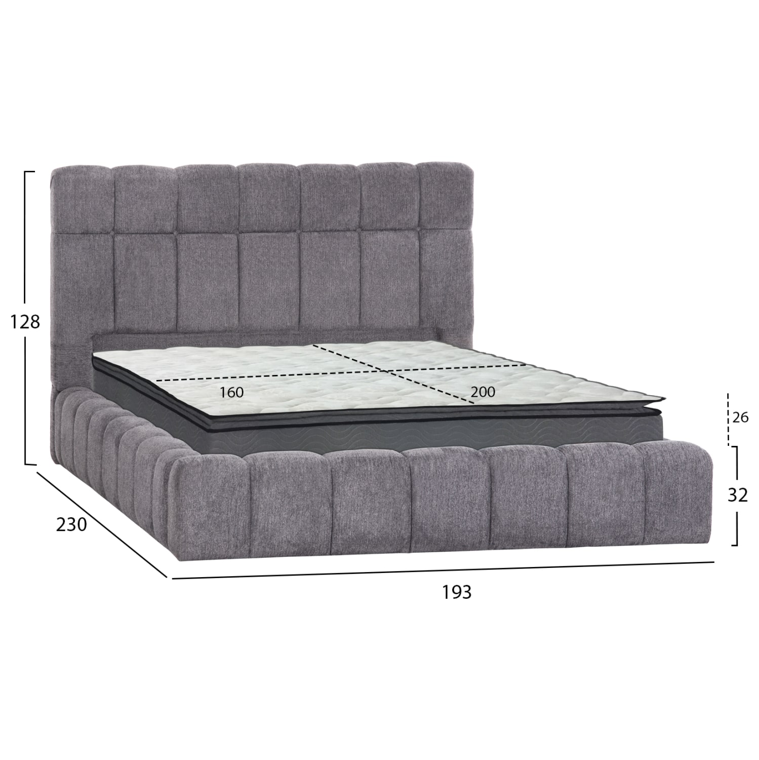 Διαστάσεις στρώματος: 160×200 εκ.—– Ύψος στρώματος: 24-26 εκ.