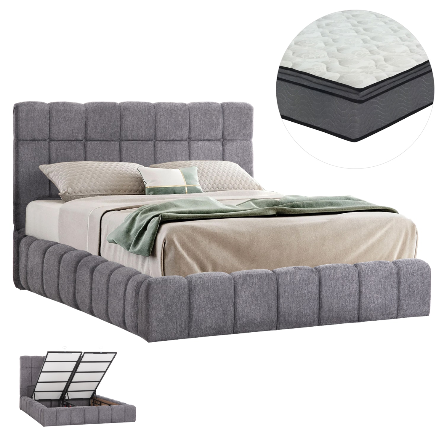 ΚΡΕΒΑΤΙ ΔΙΠΛΟ ΜΕ ΣΤΡΩΜΑ & ΑΠΟΘ.ΧΩΡΟ RAMON HM21168 ΓΚΡΙ ΜΠΟΥΚΛΕ–ΓΙΑ 160×200εκ