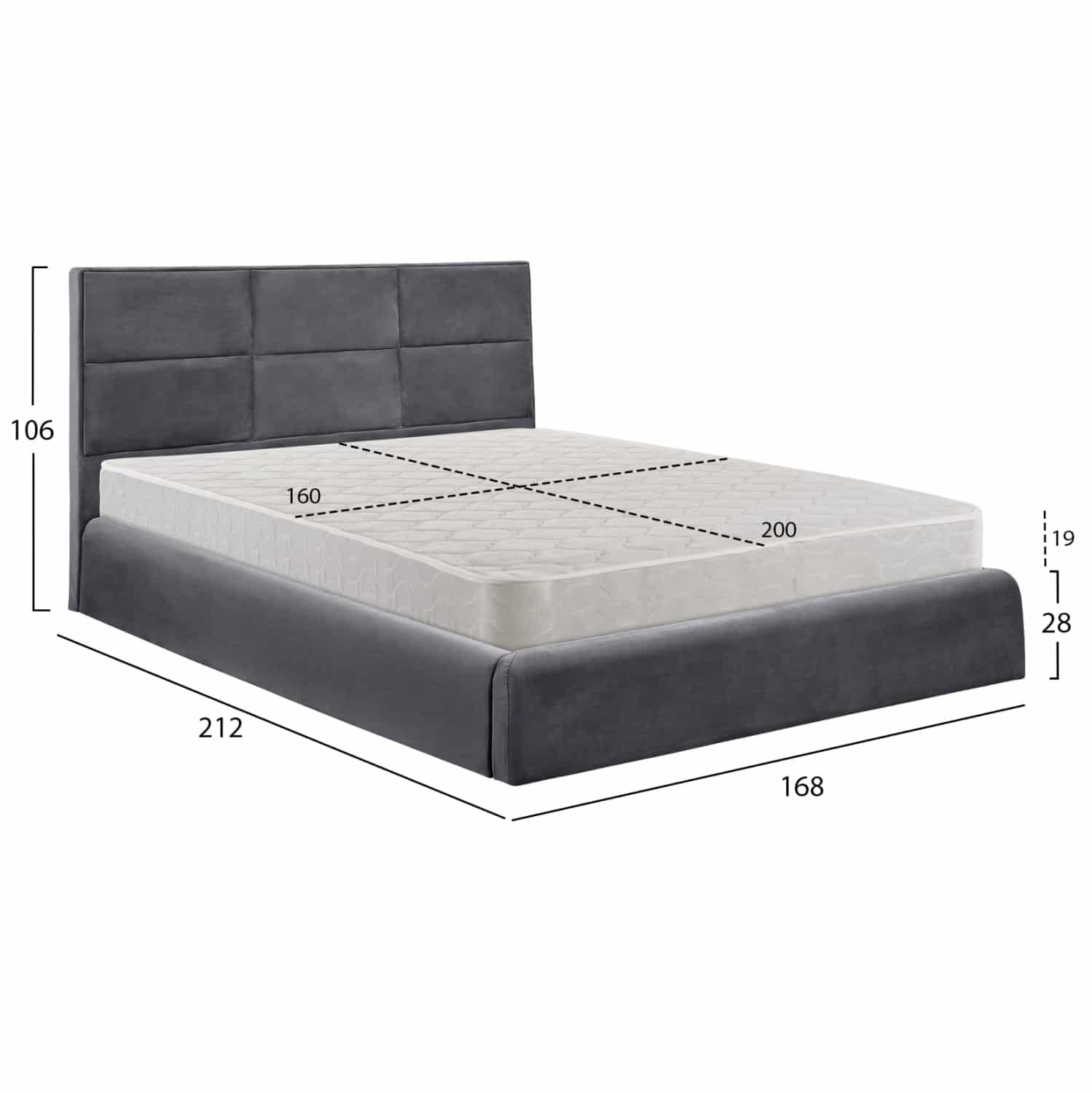 ΚΡΕΒΑΤΙ ΔΙΠΛΟ & ΣΤΡΩΜΑ BRILEY HM21272.01 ΓΚΡΙ ΒΕΛΟΥΔΟ ΜΕ ΑΠΟΘ.ΧΩΡΟ–ΓΙΑ 160×200εκ